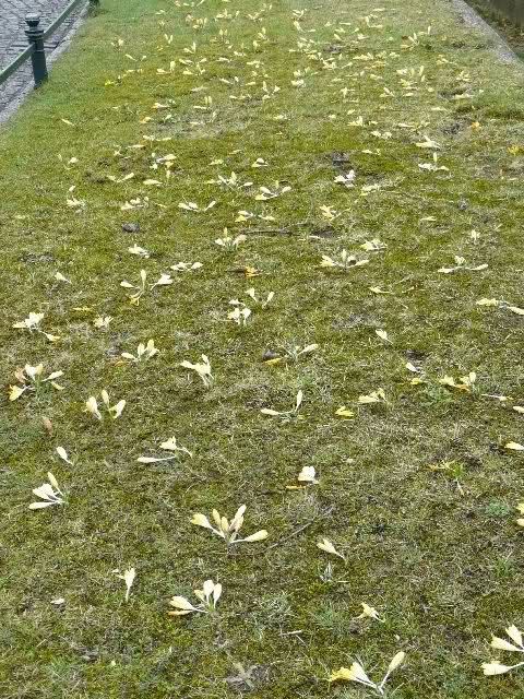 Zertrampelte Blumenwiese am Eingang. Traurig.