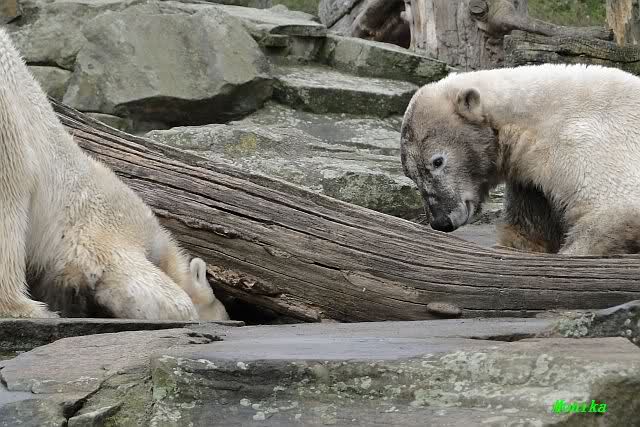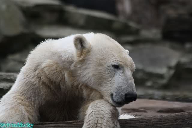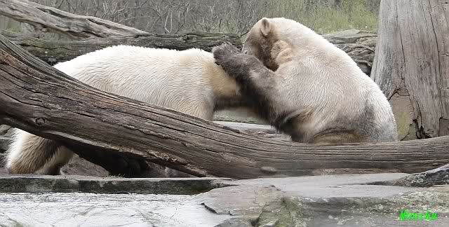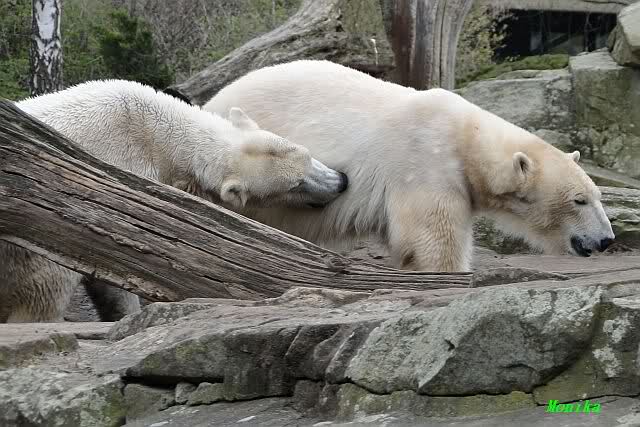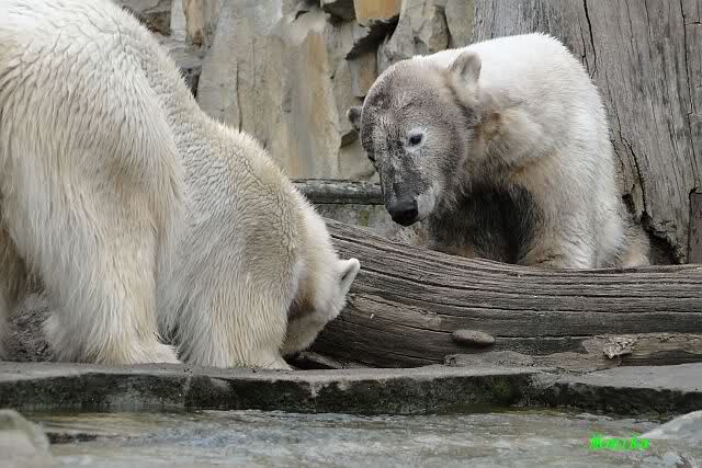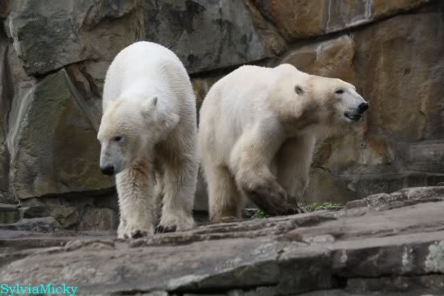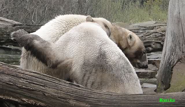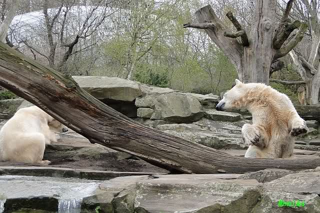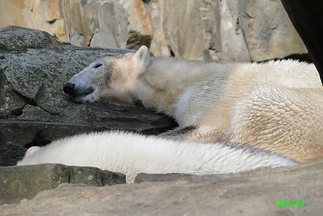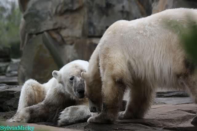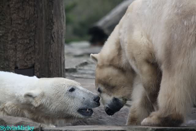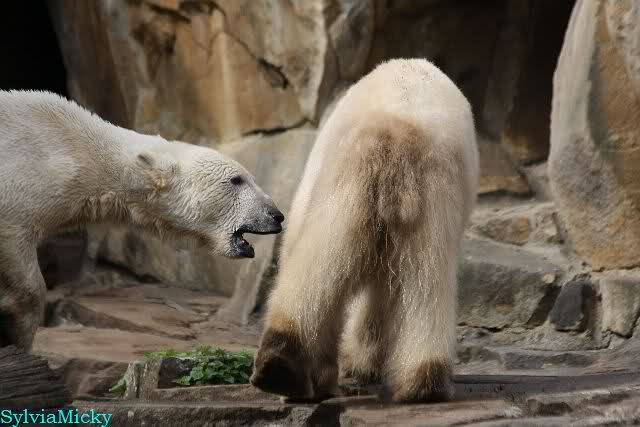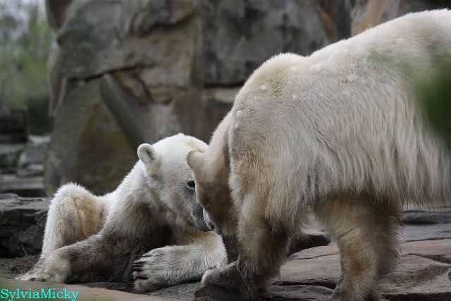 Danke für die heutige Fotoausbeute der Bärchen. Sind die wieder gut getroffen. Armer Knut, er hat aber auch keine Zeit für die Mittagsruhe. Gianna ist eben immer dabei, und stört ihn bei seinem Schönheitsschlaf.