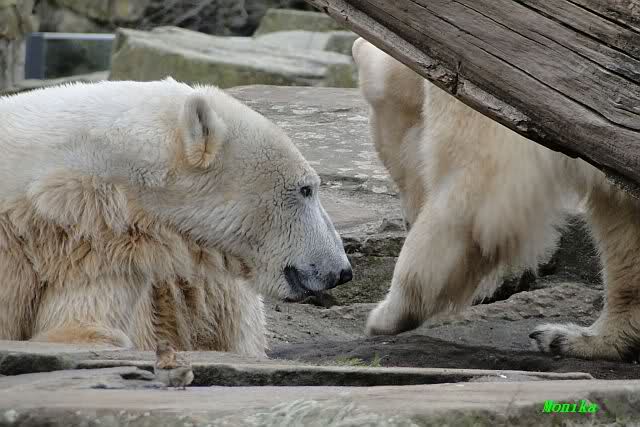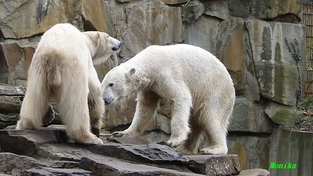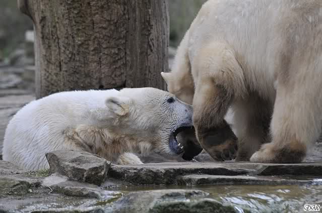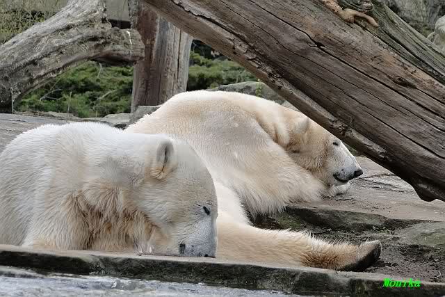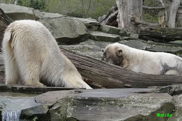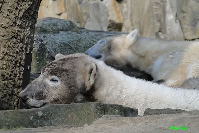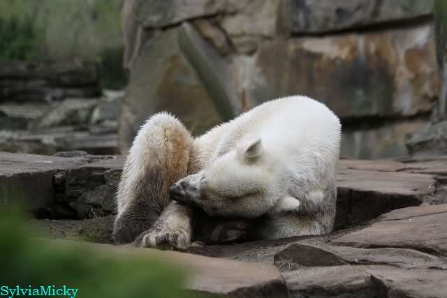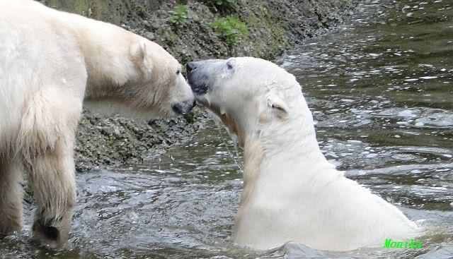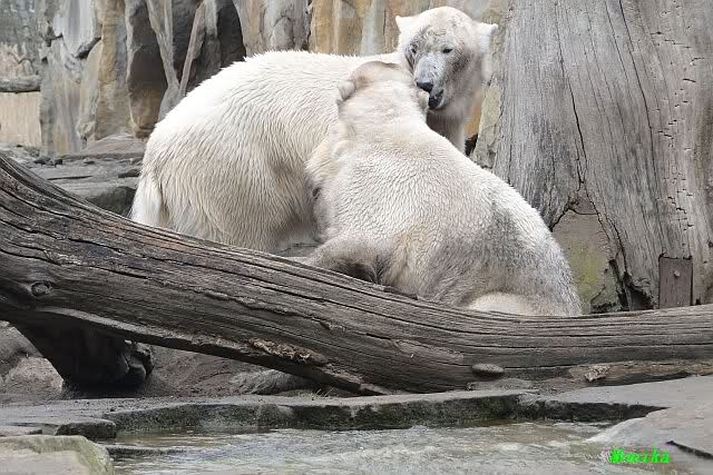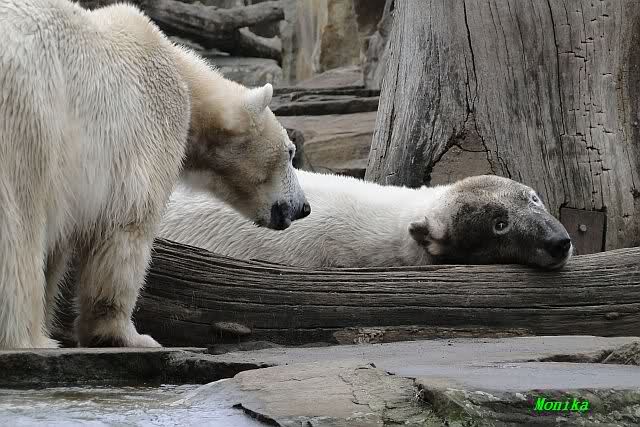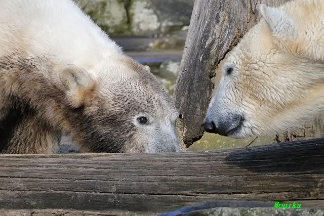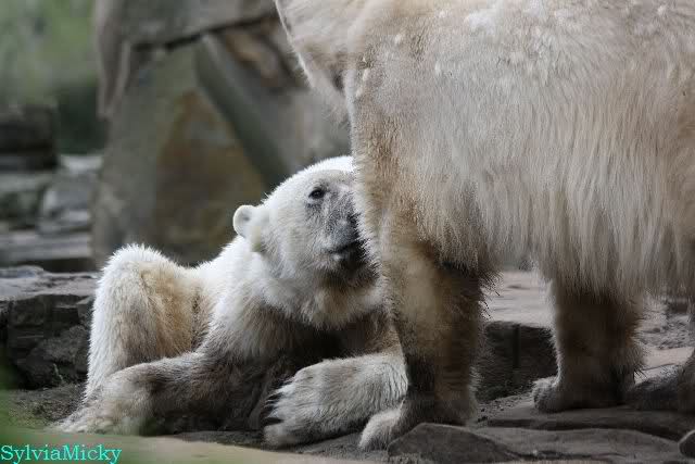 Danke für die heutige Fotoausbeute der Bärchen. Sind die wieder gut getroffen. Armer Knut, er hat aber auch keine Zeit für die Mittagsruhe. Gianna ist eben immer dabei, und stört ihn bei seinem Schönheitsschlaf.