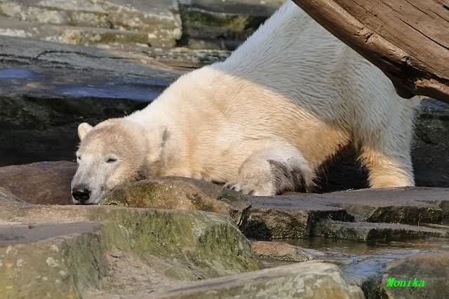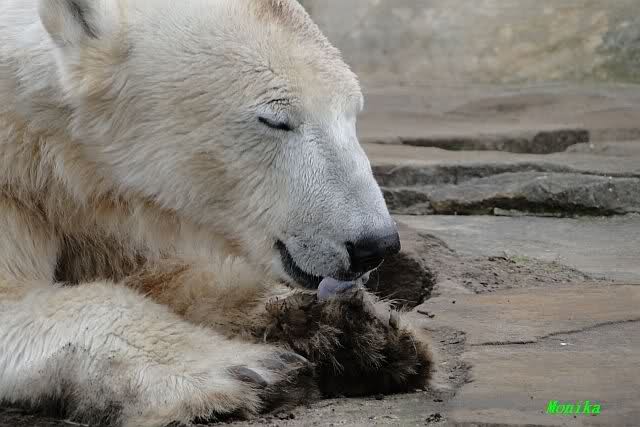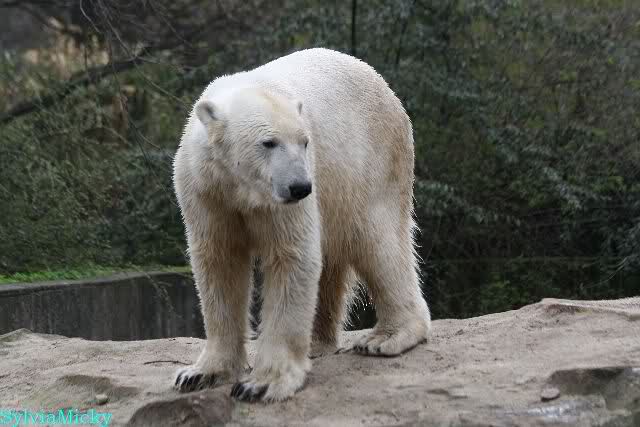 Zunächst wieder der Dank für die vielen brandaktuellen Fotos vom heutigen Tag. Auch ich war am Nachmittag nach der Fütterung im Zoo. Das Wetter war irgendwie ungemütlich und kühl. Es war die sonntägliche Ruhe angesagt. Knut ruhte, Giovanna lief. Einige wenige Fotos habe ich auch mitgebracht.