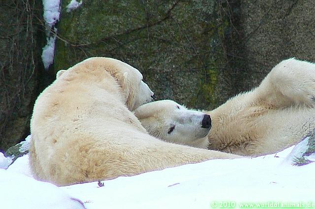 Mein Neujahrsspaziergang führte mich heute Nachmittag kurz in den Zoo. Nun ist mir klar, warum Knut schlief, Nancy und Tosca herumschmusten und Katjuscha über die Anlage wanderte. Ruhe nach dem actionreichen Vormittag