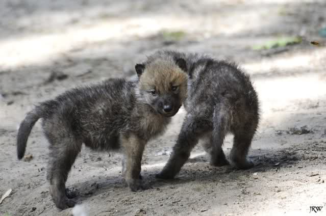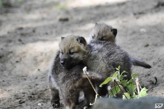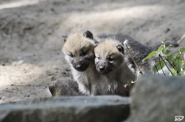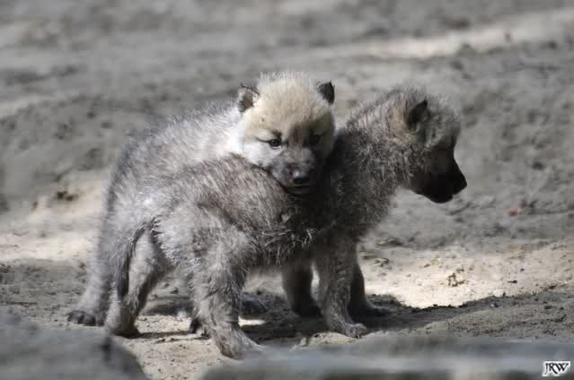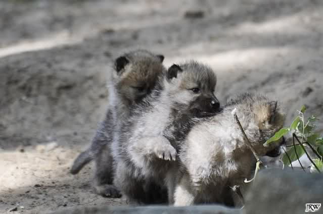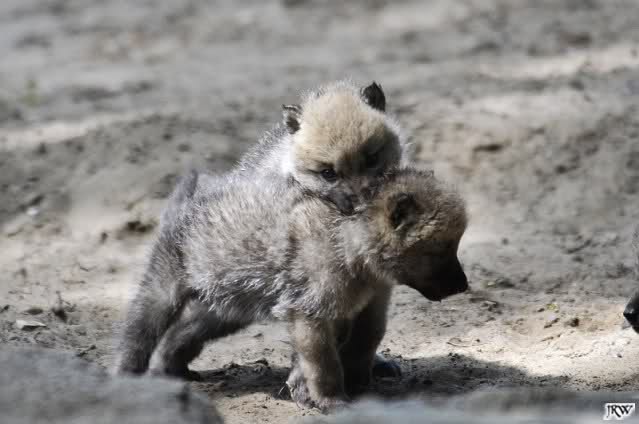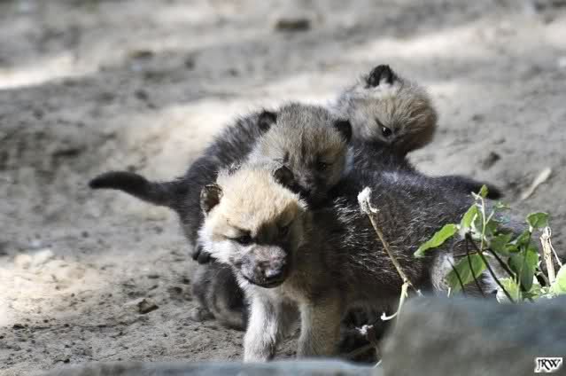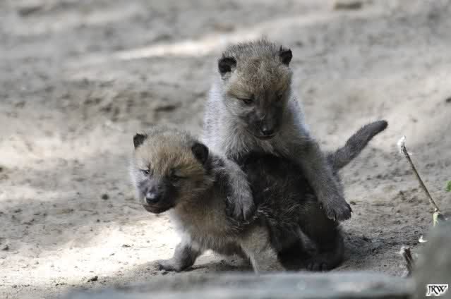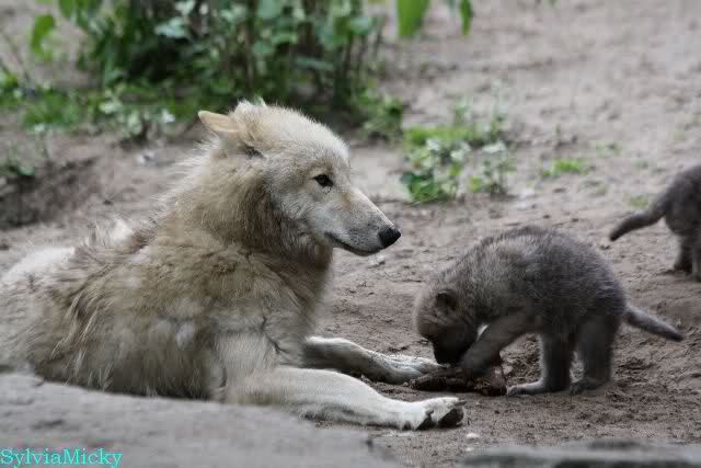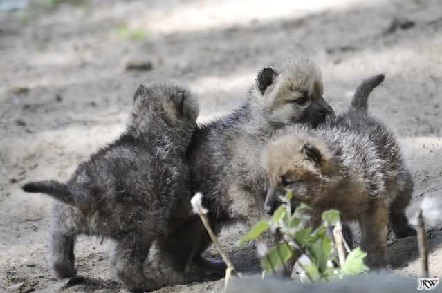 Water, danke für das reizende Video. Die kleinen Wölfe werden immer kesser. Sie lassen sich nicht mehr alles von den Großen gefallen. Sie wehren sich schon ganz mächtig. Jeden Tag kommen sie mehr und mehr heraus und wenn die Großen sie in die Höhle stopfen, kommen sie sofort wieder. Eine freche kleine Bande.