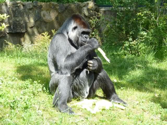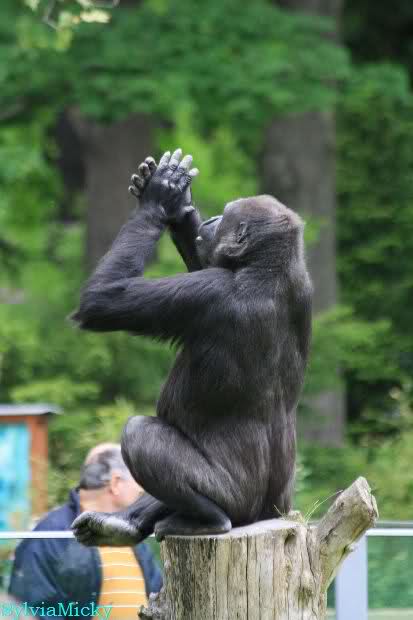 Heute stand ein Besucher die ganze Zeit an der Gorilla Anlage und starrte und sprach die ganze Zeit mit Ivo. Es ist der gleiche Besucher der im Winter ständig die Affen anstarrt. Egal, wo Ivo hin ging er folgte. Auch als Ivo ein Grasbüschel nach ihm geschmissen hat, hörte er nicht auf. Ich habe versucht im Winter mit dem Besucher zu reden. Zwecklos.