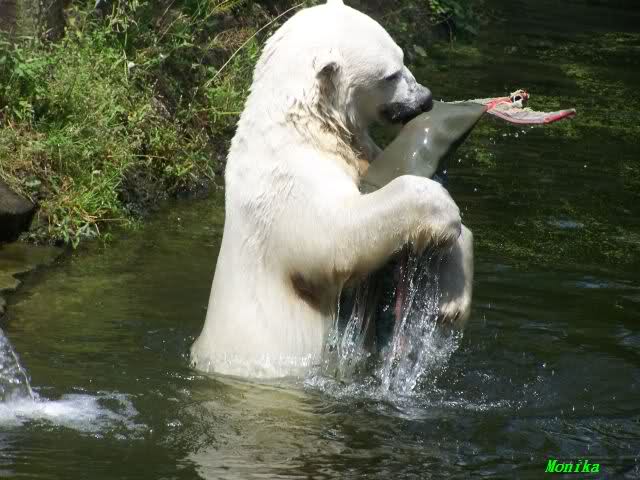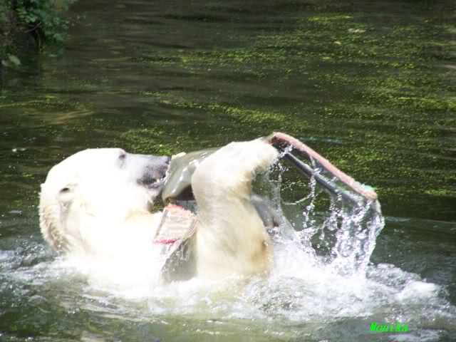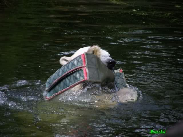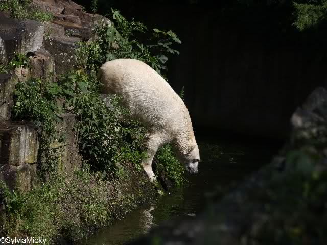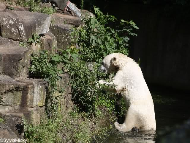 Hello to you all Knut friends around the world. Hot summer in Knut City. But our polar bear is in a good mood. That`s it what you can see on Monikas Knut pictures from today.