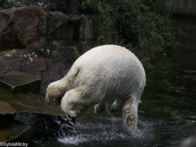 Knuti tobte sich auch heute wieder im Wasser aus. Am liebsten wäre ich mit reingesprungen. Der Zoo war zwar heute wieder gut besucht, aber nicht so überfüllt wie in den letzten Tagen.