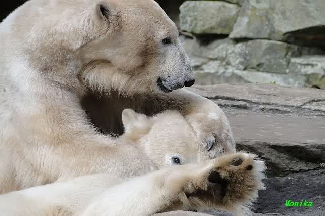 Monika und Ina das sind ja richtig schöne und süsse Bilder von Knut und Gianna. Danke, danke und nochmals danke. Leider wurde unsere Flucht storniert deshalb könnte (konnte) ich diese Woche nicht in Berlin sein. Aber wenn es klappt fliegen wir über 3 Wochen nach Berlin, nach Knut und Gianna! Ich freue mich schon darauf.