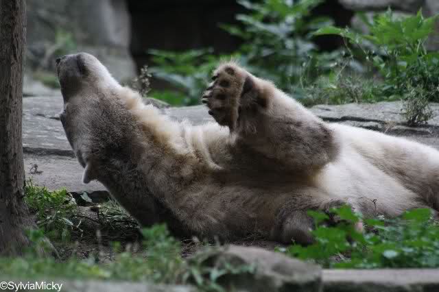 Ein bisschen Knut von gestern. Von Nackthuhn, schminken bis zur richtigen Lage in seiner Kuhle nach der Abendfütterung.