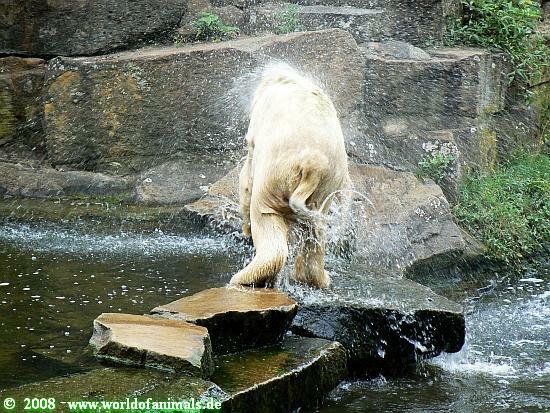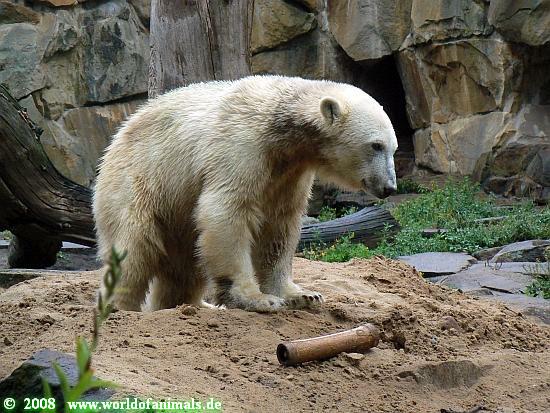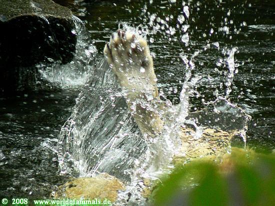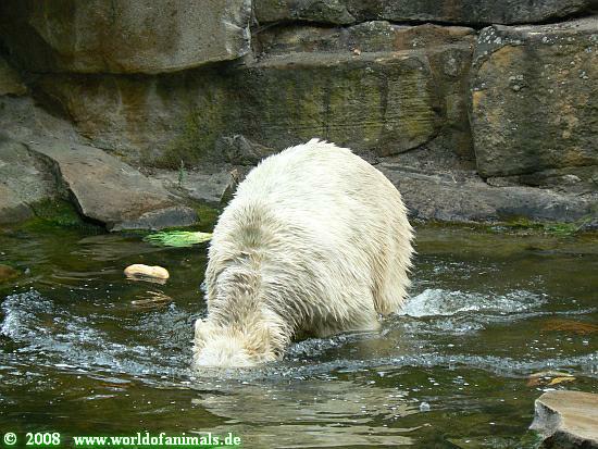 Dann ging´s wieder zu Knut. Der hatte sein Schwimmpensum absolviert, war aber immer noch schön sauber. Er lief auf seiner Anlage hin und her und betrachtete seine Besucher.