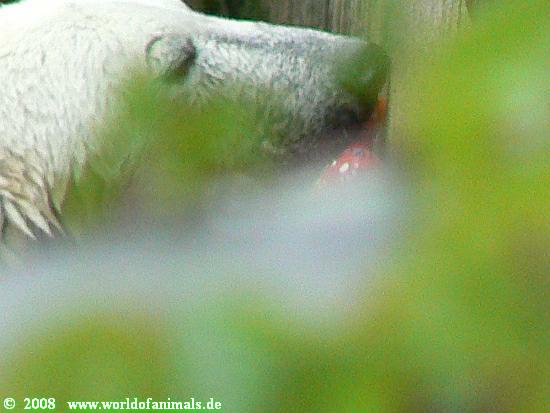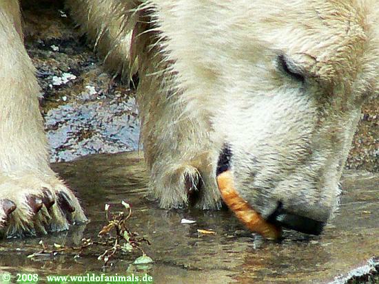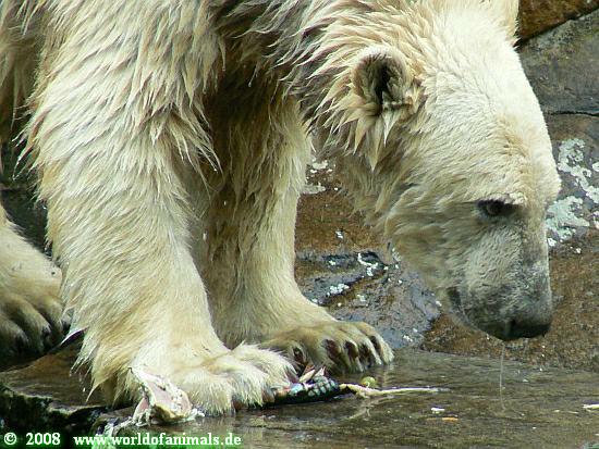 Dann waren wir bei den Eisbären angekommen. Die Fütterung machte heute ein junger Pfleger, den ich noch nie gesehen hatte. Aber die Fütterung gefiel mir ausgesprochen gut.