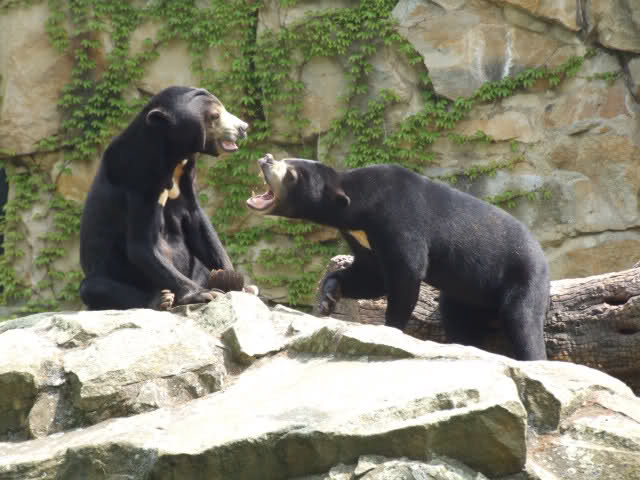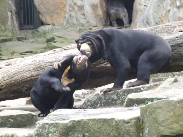 Leider arbeitet dieser Pfleger nur heute im Bärenrevier. Das erfuhr ich, als ich meine Tüte an ihn loswurde. Ebenso erfuhren wir, dass die Malaienbären in der Zwischenzeit schon gefüttert worden waren und zwar von Herrn Henkel, der ab heute wieder da ist.