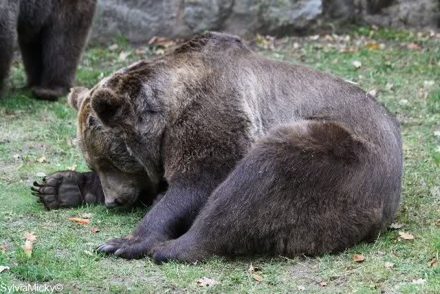 Sie läuft auch ab und zu herum, um sich ihr Futter zu suchen. Aber sie möchte nicht nach oben kommen. Das heißt nun weiter abwarten. Es ist nur für die anderen Bären schlimm, dass sie nicht ins Freie können. Auf meine Frage, ob es nützlich für Lisa wäre, wenn Yoghi auf die Anläge käme, bekam ich die Antwort, dass Lisa nicht so auf Yoghi geprägt ist, wie es umgekehrt de Fall ist.