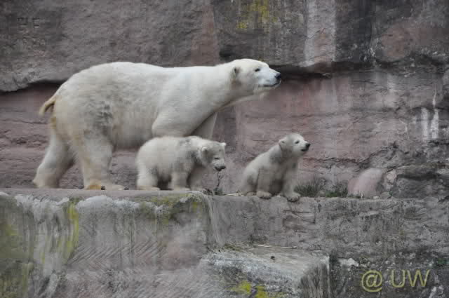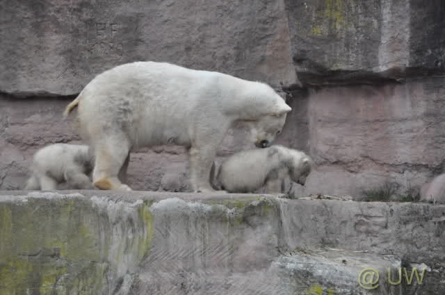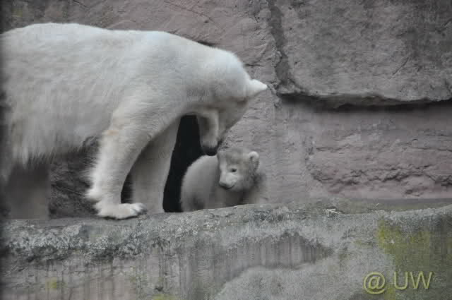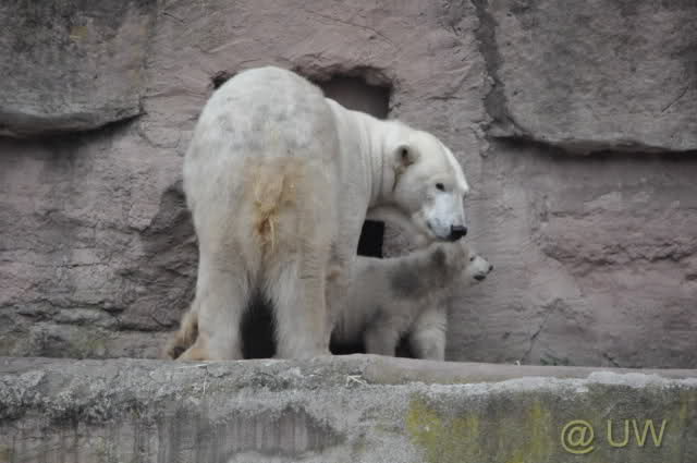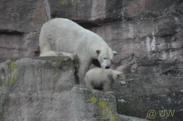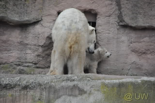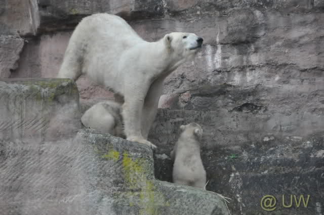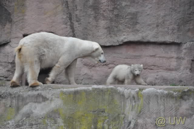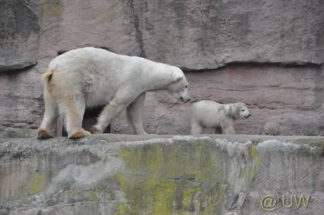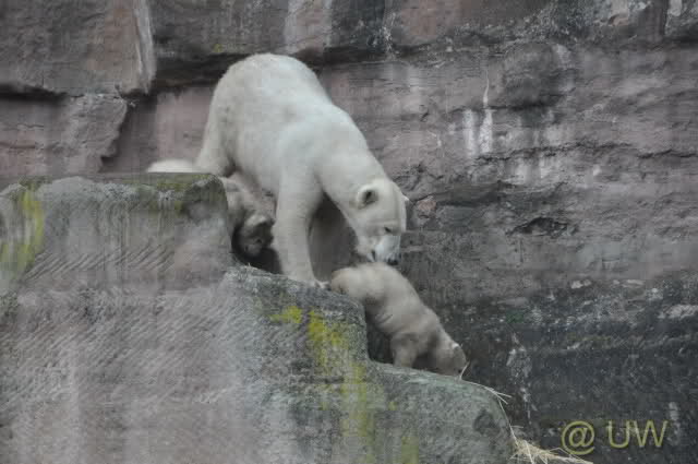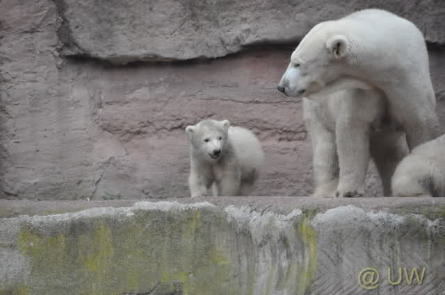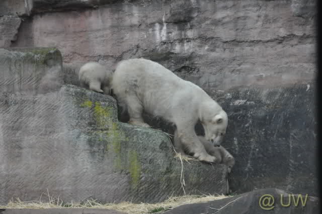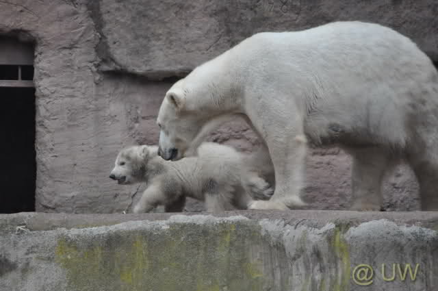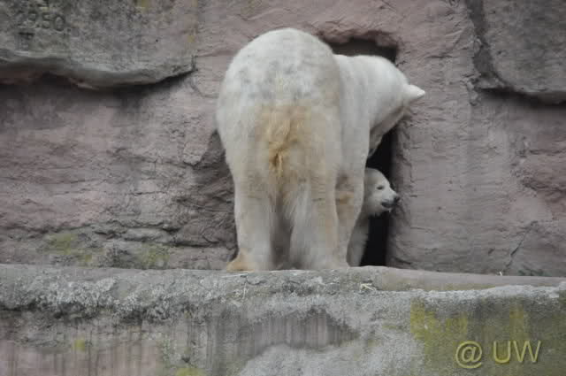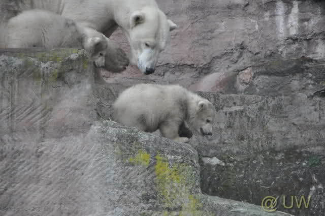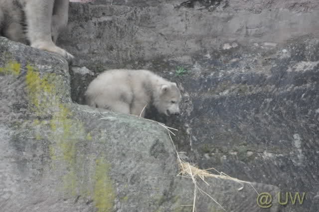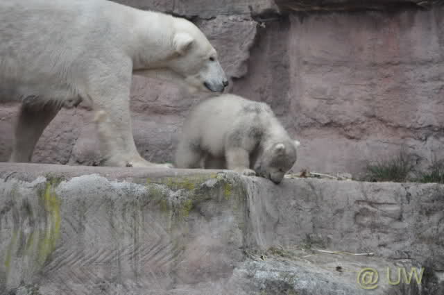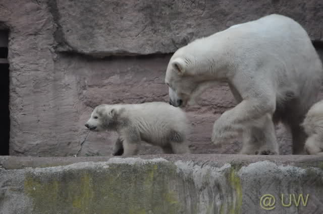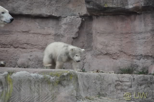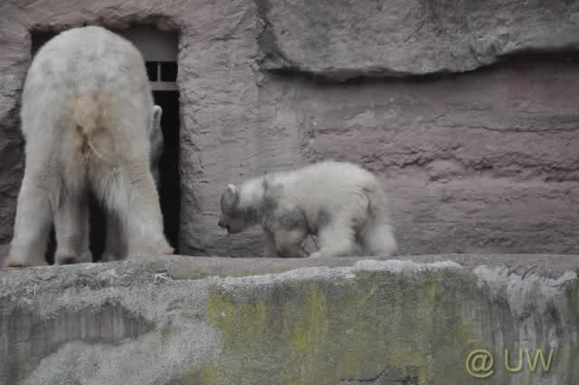 Jetzt geht es in Richtung Treppe - die Stufen sind für Eisbärbabys ganz schön hoch
