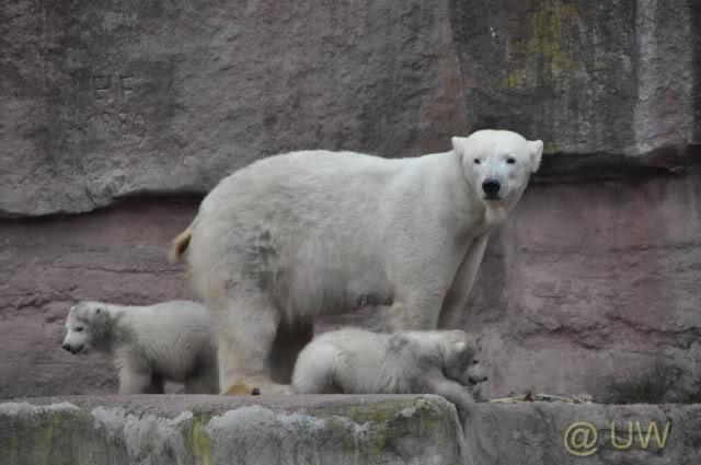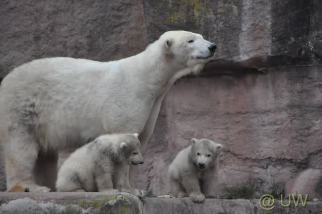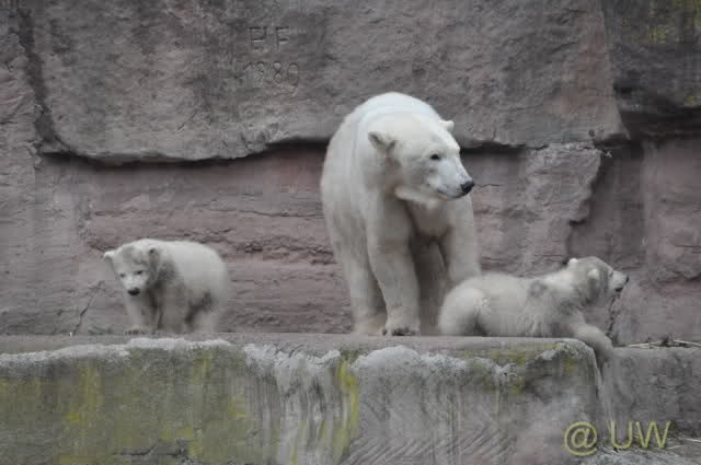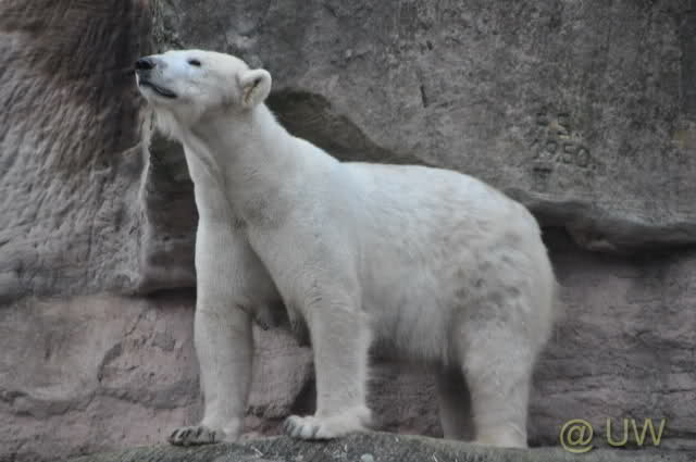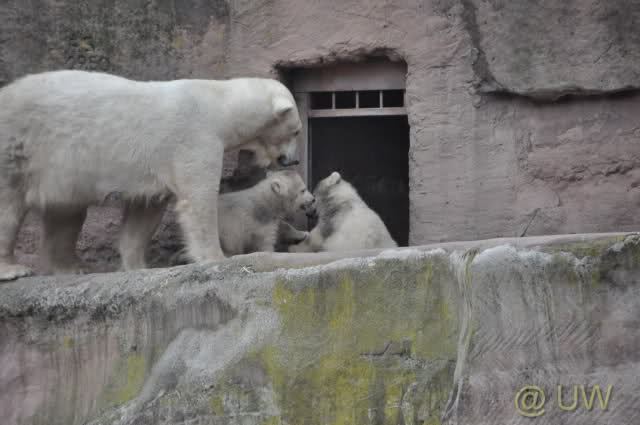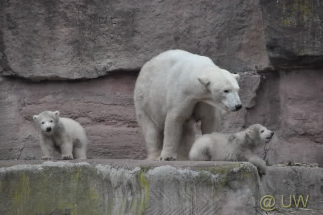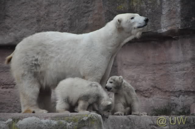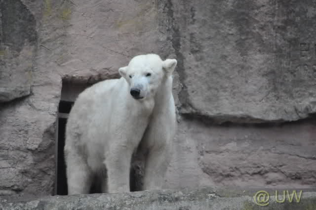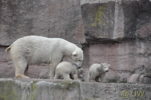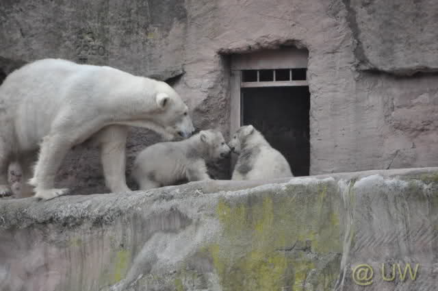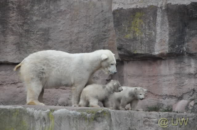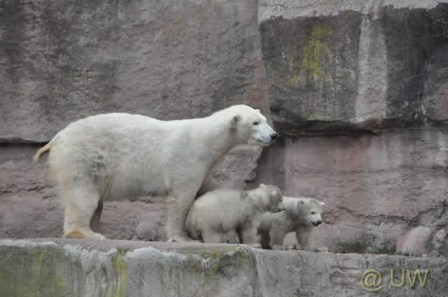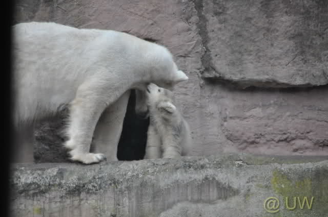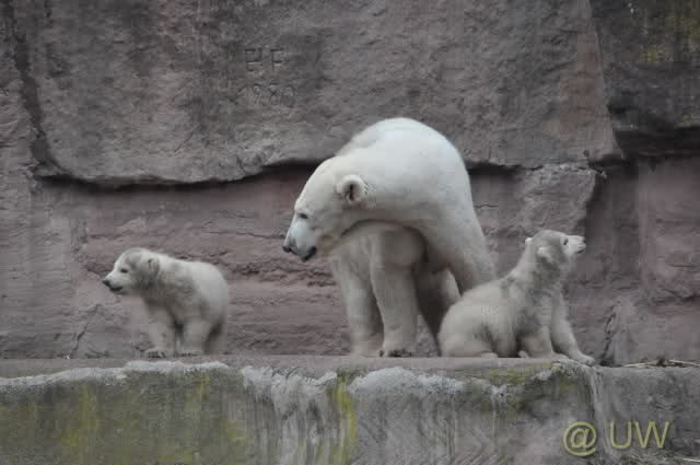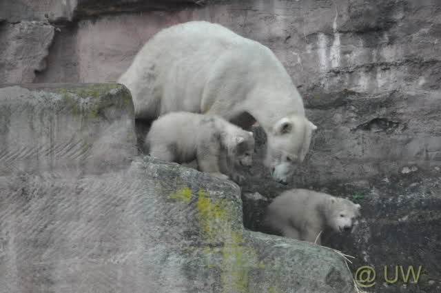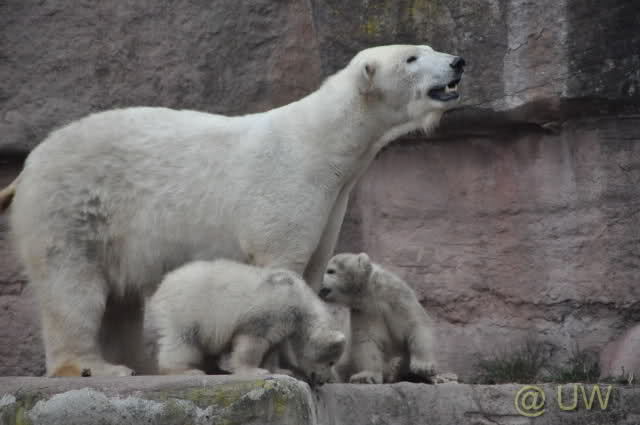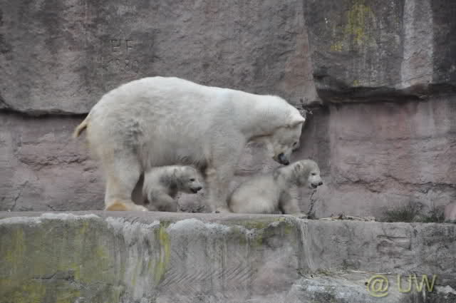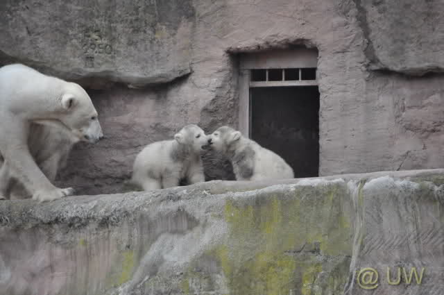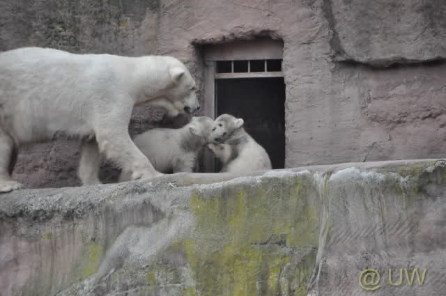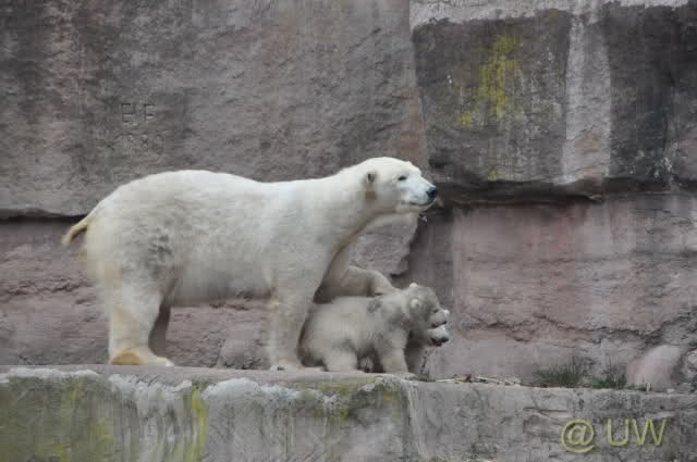 Jetzt geht es in Richtung Treppe - die Stufen sind für Eisbärbabys ganz schön hoch