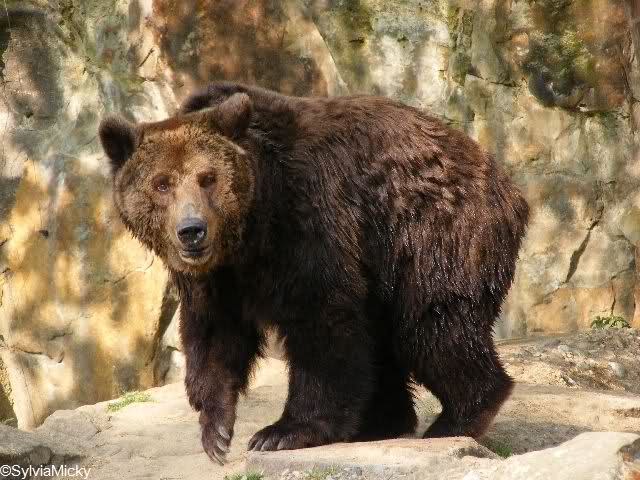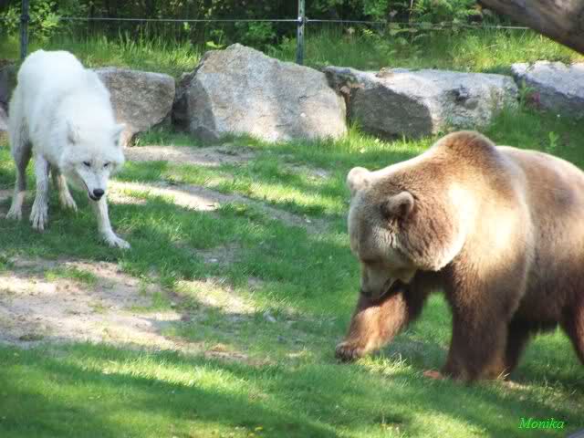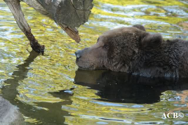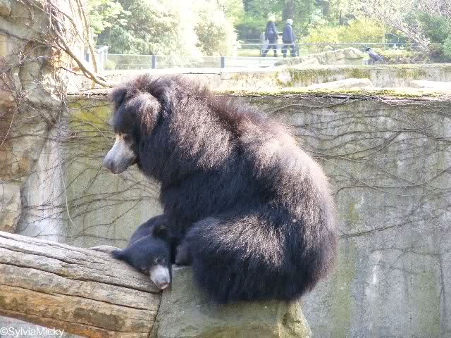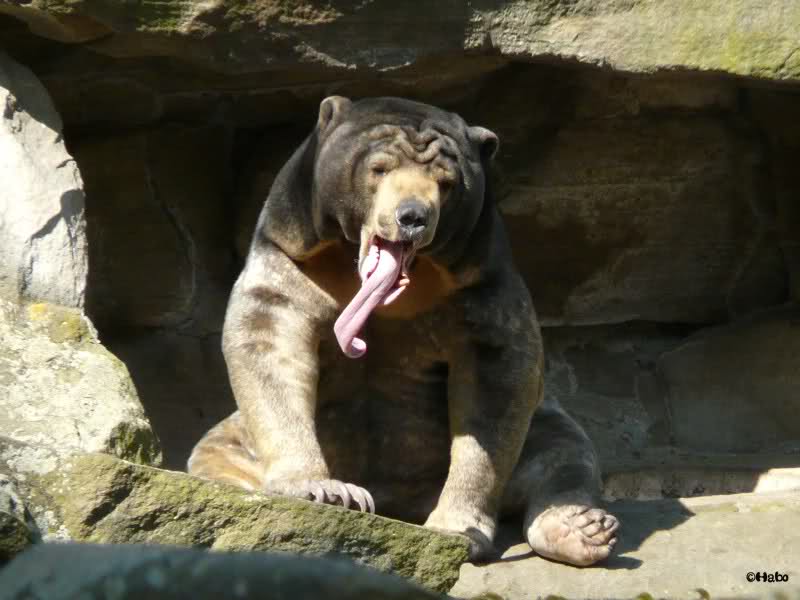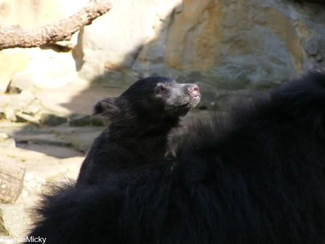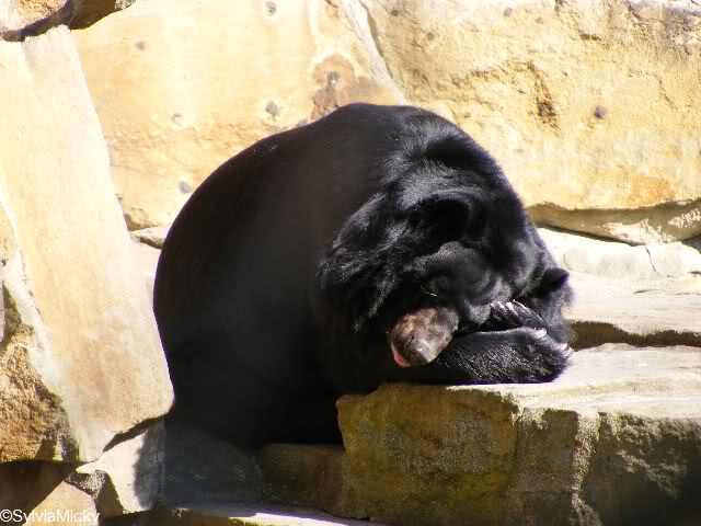 während der Kragenbär zwischen den beiden Anlagen sein Sonnenbad genoß