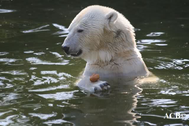 Über Jana haben wir uns heute besonders gefreut. Nachdem sie erst pausenlos ihre Runde um dem Baum gedreht hat, ging sie plötzlich ins Wasser und fand sogar noch ein paar Leckerchen. Während Knut schlief, richteten sich viele Kameras auf die badende Jana.