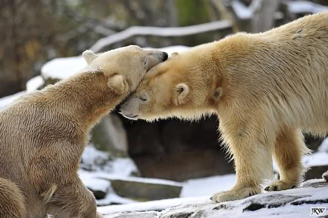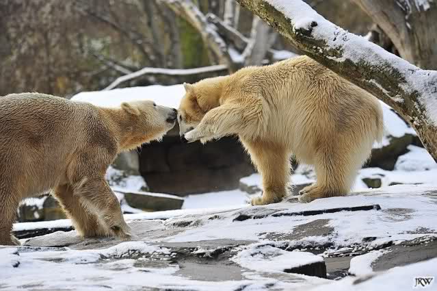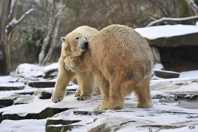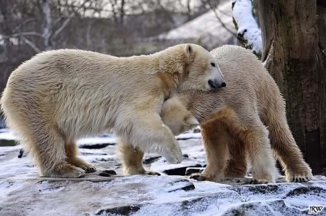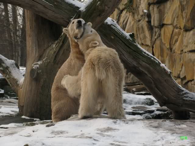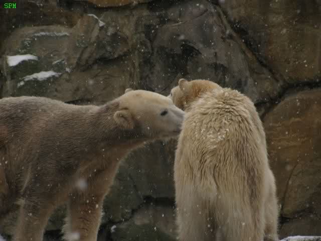 Die 2 Eisbärchen im Schnee spielend und schmusend - einfach zauberhaft