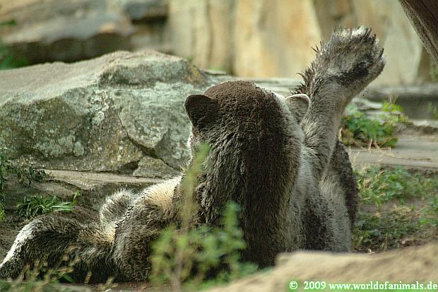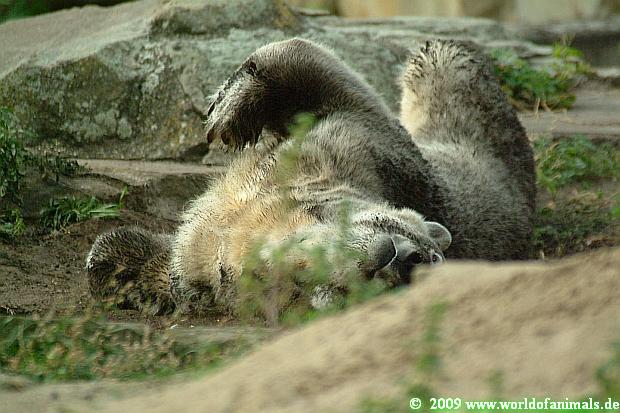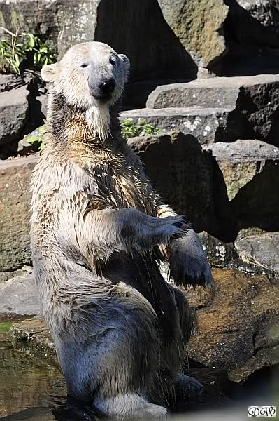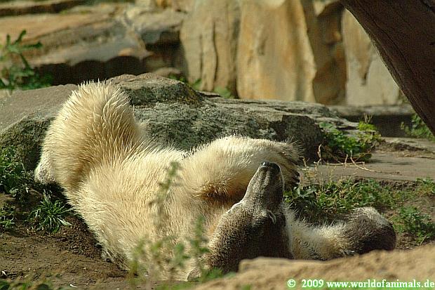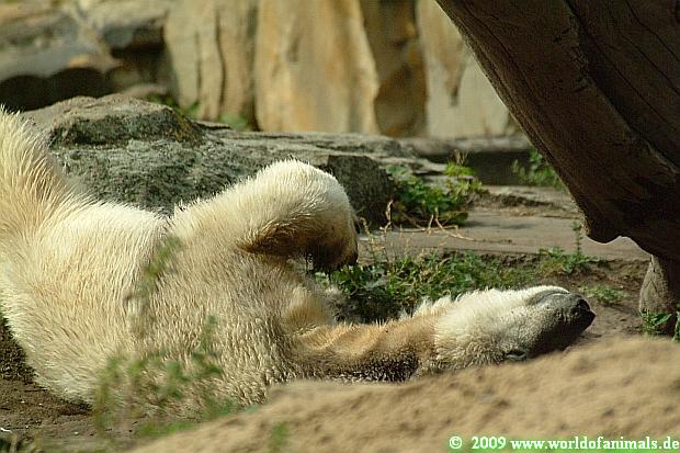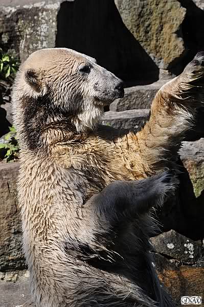 Marion, der junge Pfleger gibt sich wirklich immer sehr große Mühe mit Knut und ist auch sehr geduldig. Rührend ist es anzusehen, wie er Knut die Möhrchen zerteilt. Auch Croissants und Bananen werden einmal durchgebrochen. Aber nicht nur bei Knut, auch bei Bernie und den anderen Bären wirft er so, dass alle an ihr Futter kommen. Das ist zur Zeit besonders bei Bernie wichtig. Ich hoffe, dass es Petzi bald wieder besser gehen wird und sie wieder auf die Anlage kann.