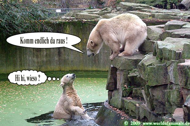 Ich würde mich freuen, wenn sie es diesesmal schaffen würde. Dann kann sie zeigen, dass sie es kann und eine gute Mutter ist. Ja, ein kleiner Eisbär würde sicher nicht in Berlin bleiben dürfen, das stimmt. Doch es wäre schön, wenn Tosca es dieses Mal aus eigener Kraft schaffen würde. Versteh mich bitte, sie hat es bei Knut nicht gekonnt. Sie muss ja das Gefühl haben, eine Versagerin zu sein. Wie soll sie es auch richtig gelernt haben, man hat sie mit ein paar Monaten von ihrer Mutter in Churchill getrennt. Ich würde es ihr so wünschen. Mag sehr sentimental klingen, ich weiss.