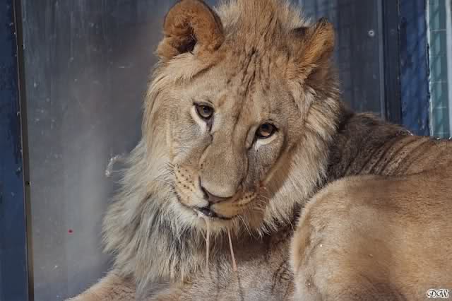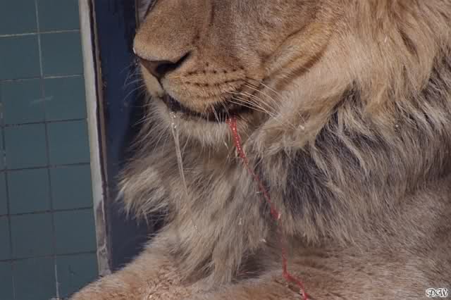 Vielleicht hatte er Schmerzen durch das Stück Knochen, das sich in seinem Maul verklemmt hatte und nicht entfernt werden konnte, bzw. entfernt wurde, vielleicht war es auch der Trennungsschmerz, das er von der Mutter und Tante getrennt wurde... Ich weiß es leider nicht genau. Alles stützt sich auf die Aussagen von Besuchern die heute früh im Raubtierhaus waren.