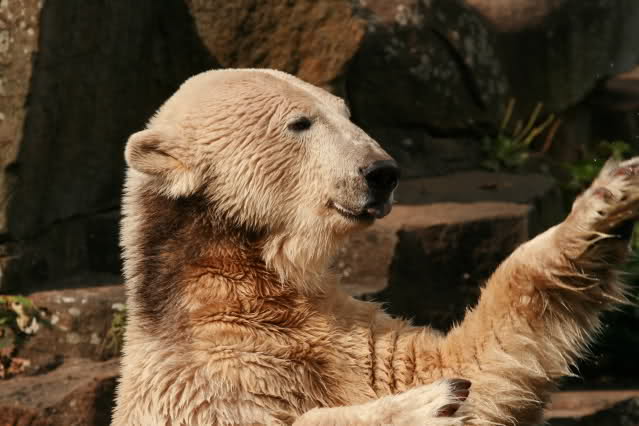 Noch kurz zum Film: Reißerisch aufgemacht, aber immerhin, wenn es denn vielen Menschen die Augen öffnet, dann ist das okay. Die Bemerkungen zu Knut vergessen wir lieber. Knut ist kein Eisbär der *winkt*. Er bettelt um Futter, so bezeichne ich diese Bewegung.