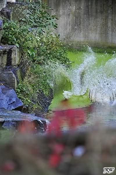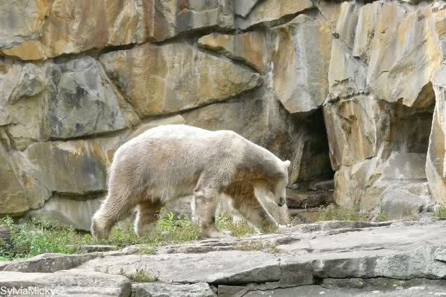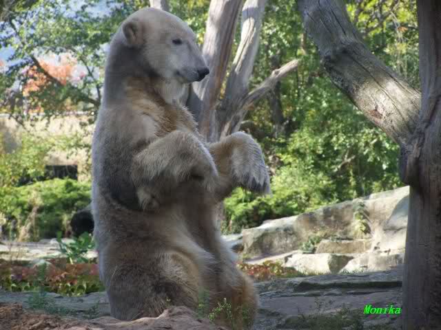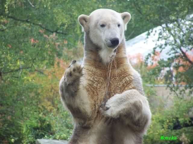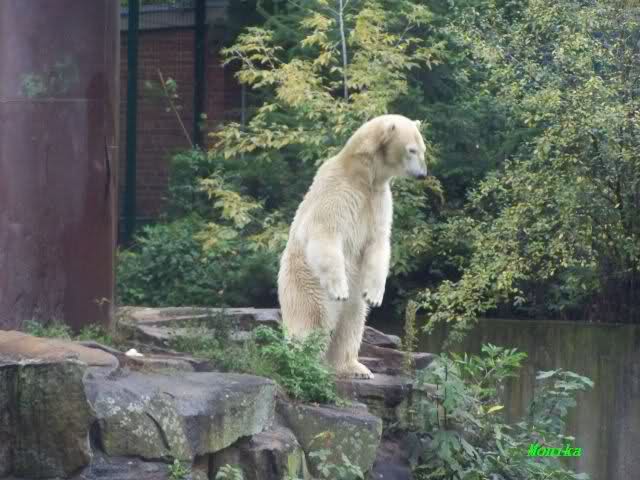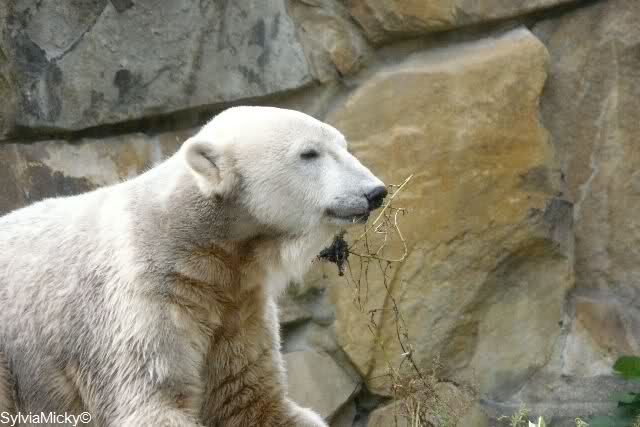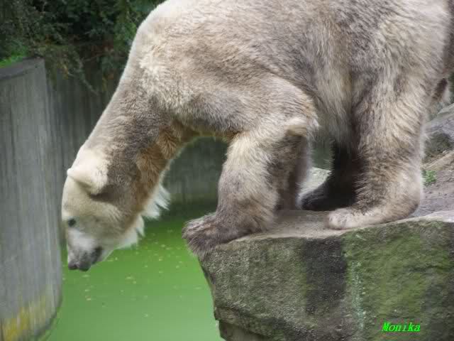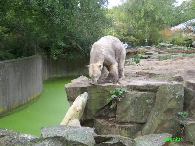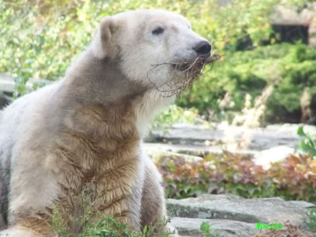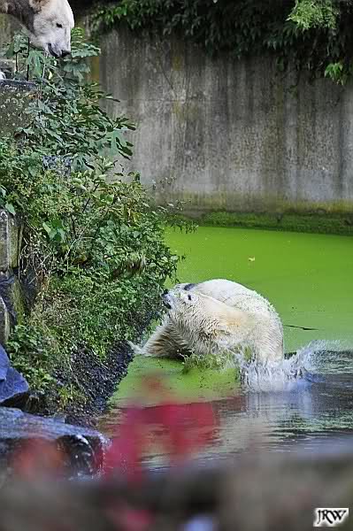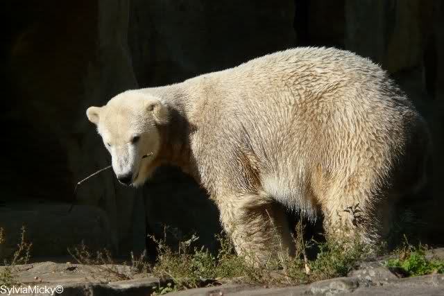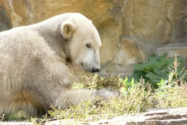 Ich war heute nach der Fütterung im Zoo. Knut pfriemelte viel an den Gräsern und stellte sich öfters hoch. Gianna sprang auch wieder oft ins Wasser aus Furcht vor den Braunbären.