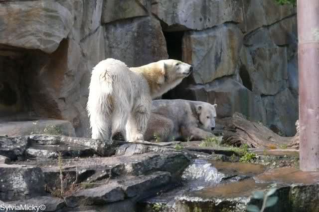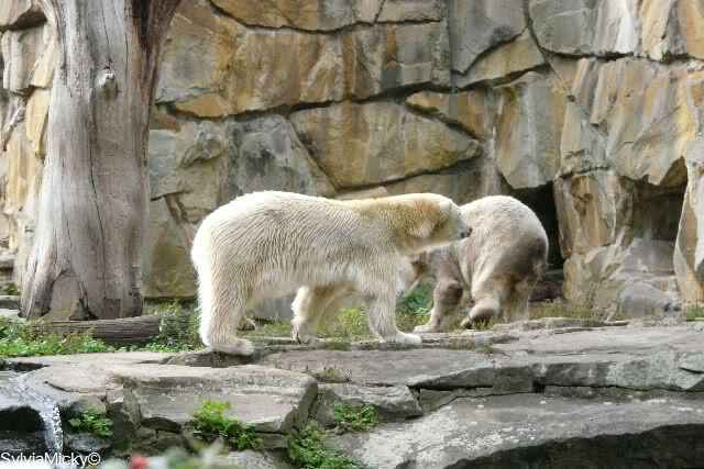 Dieses Video von Jessie zeigt Knut und Gianna heute. Es sind einige interessante Szenen dabei, z.B. am Anfang läuft Gianna über die Anlage und sucht Knut, er liegt und schläft, sie findet ihn und beleckt ihn kurz oder Knut's Versuch Gianna in ihr Hinterteil zu zwicken und was dann passiert. Für eine Sekunde hielten die Besucher den Atem an.