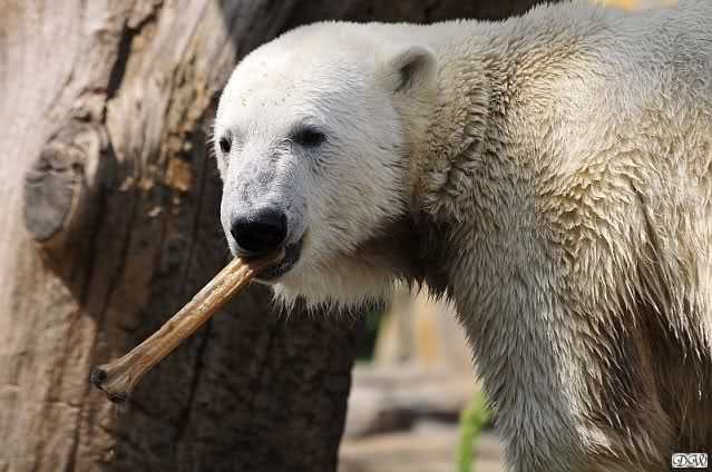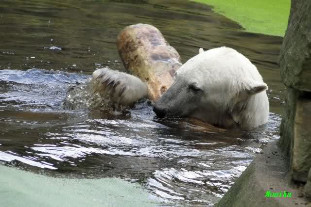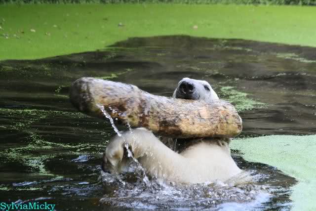 Dann war wieder der Baumstamm am Wickel. Als ich gegen Mittag den Zoo verließ, spielte Knut immer noch mit dem Baumstamm