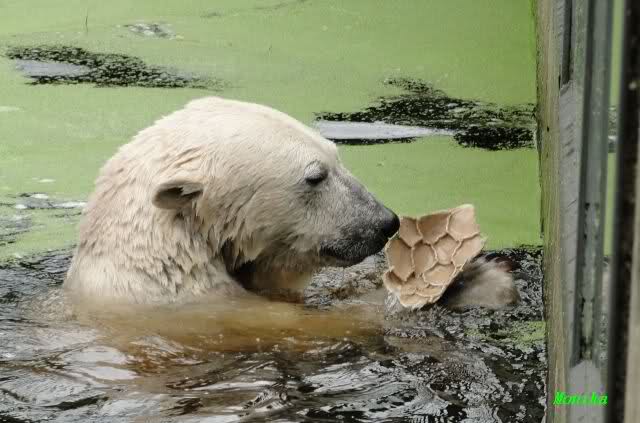 Knut ist, war und bleibt ein Eisbär, das sehe ich auch so Doris. Hatte bisher auch den Eindruck einen Eisbären zu sehen. Einen ziemlich normalen Bären dazu.