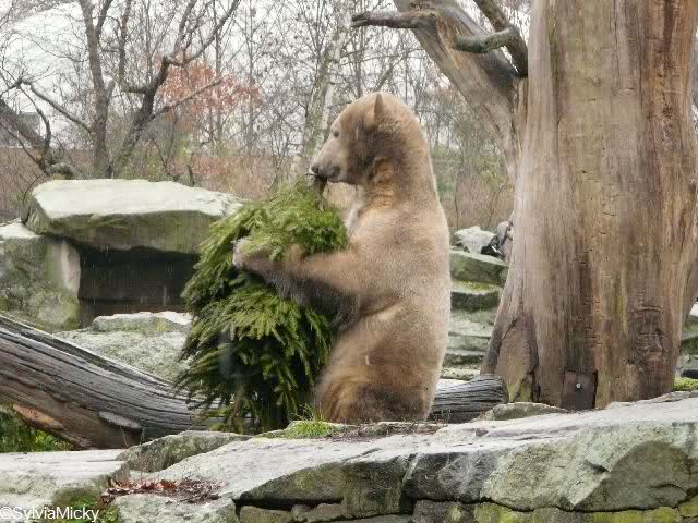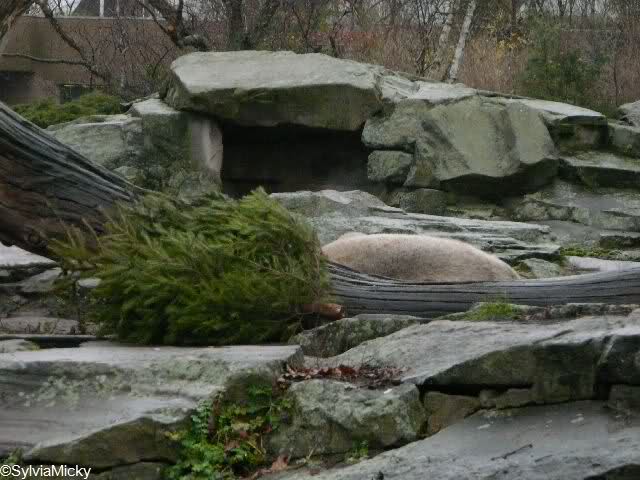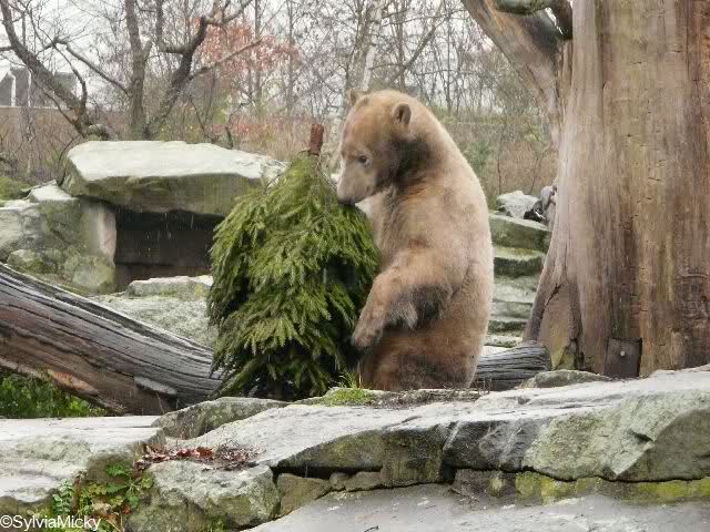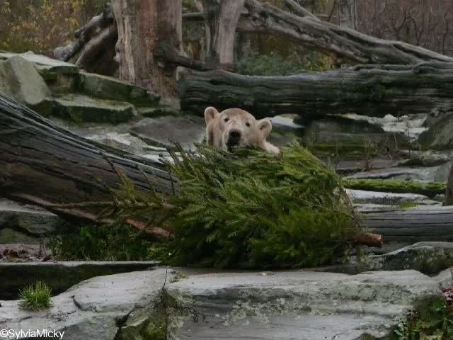Heute Morgen um 9.00 war ich an Knuts Gehege, da Knut seinen ersten Tannenbaum erhielt. Ich war um 9.00 da: Knut schlief. Um 9.30: Knut schlief. Um 10.00: Knut schlief. Es waren noch einige Knutfreunde da. Ein netter Knutfreund sagte, angelehnt an Loriot: Ein Leben ohne Knut ist möglich aber sinnlos. Dann überlegten wir den Baum per PC auszuschneiden und einen munteren Knut einzusetzen. Es war heute früh trotz oder gerade wegen der Kälte und Regen/Schneeschauern eine sehr lustige Gruppe.