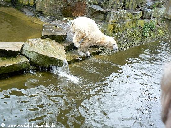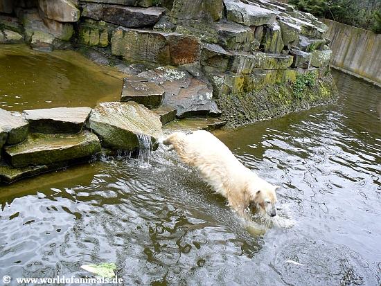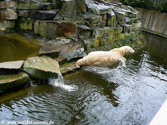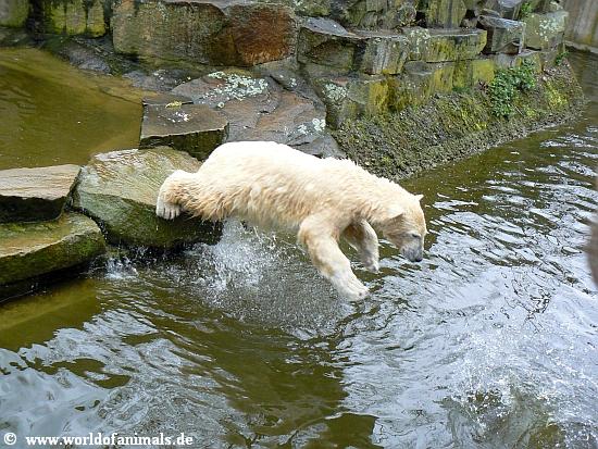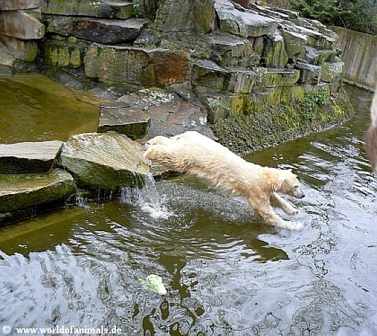 Knut trained for the Polar bear Jump Championship today. His first jump was the best. Resault from the visitors: 6.0 points. The flying Knut.. / Knut trainierte heute für die Eisbären-Sprungmeisterschaften. Der erste Sprung erzielte gleich die Note 6.0 von den Besuchern. Der fliegende Knut...