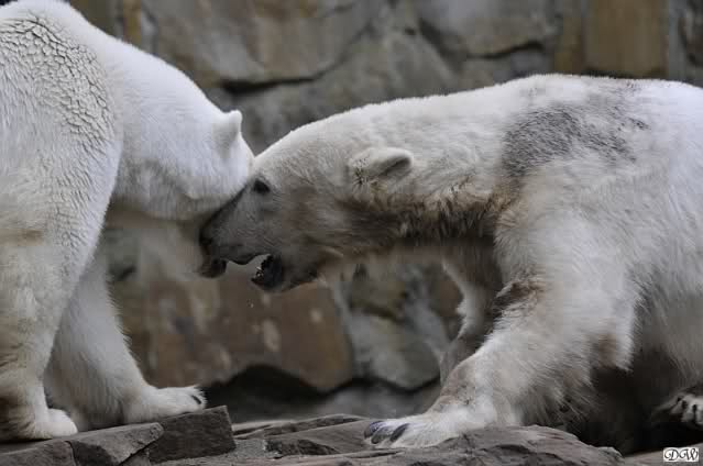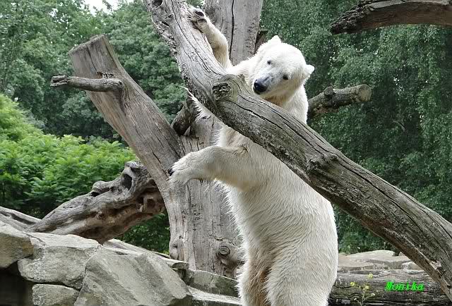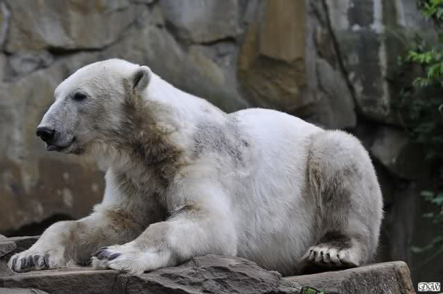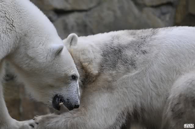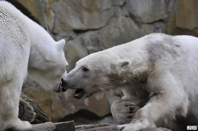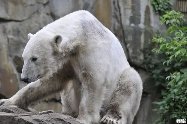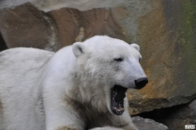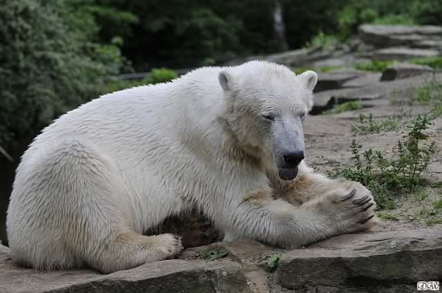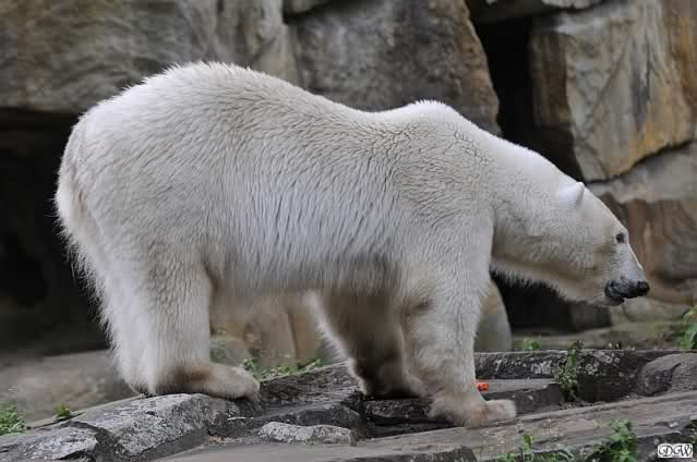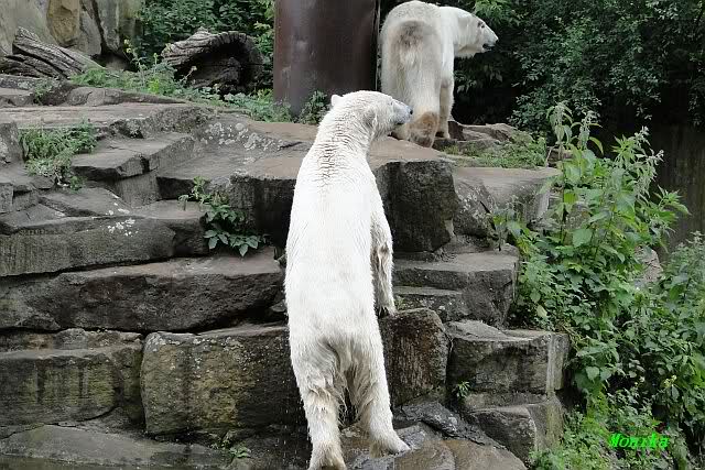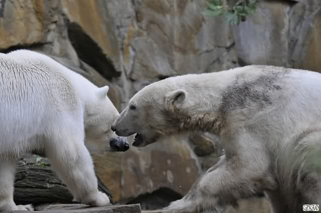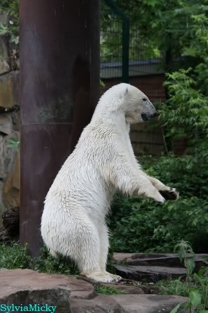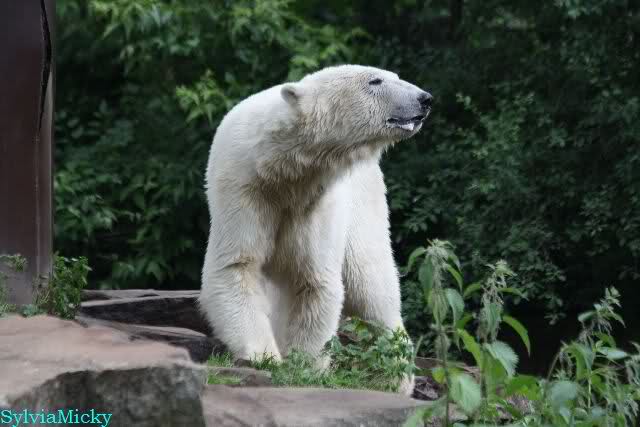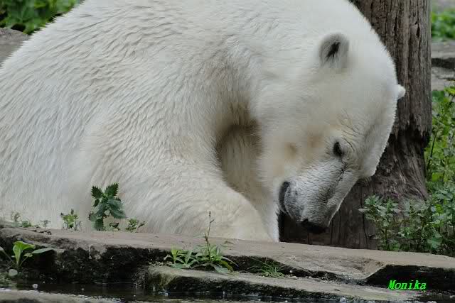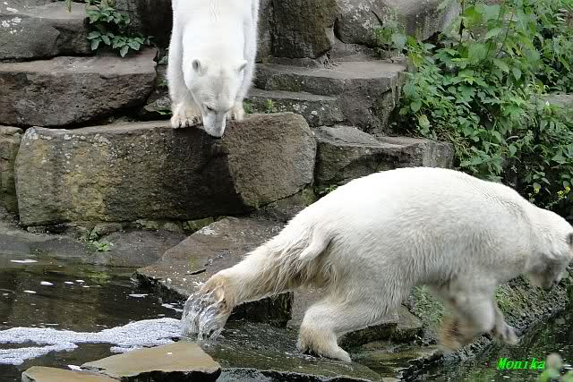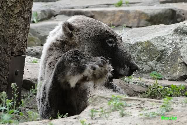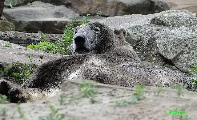Eine Knutfreundin erzählte mir, daß die Braunbären sich gestritten haben. Gianna hatte sich sehr erschrocken und lief zu Knut hin der unter dem Baum lag und schlief. Er brummte sie aber weg. Gianna lief den ganzen Vormittag und setzte sich erst gegen eins hin.