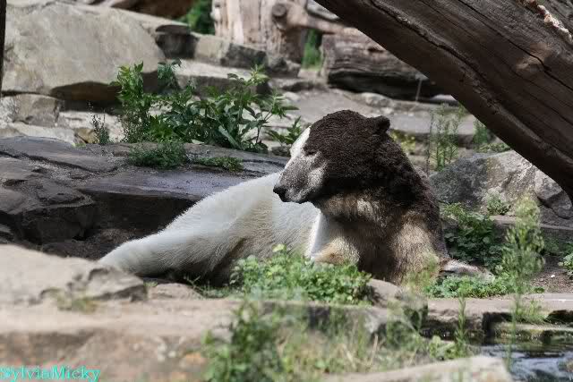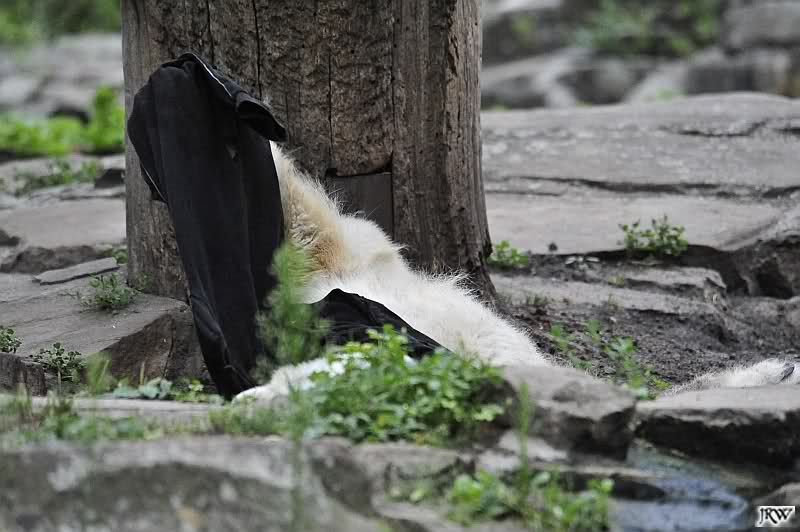 Als ich mittags ging, lag Knut vor dem Höhleneingang und nuckelte, und Gianna lag am Baum.