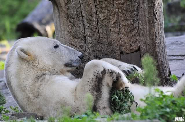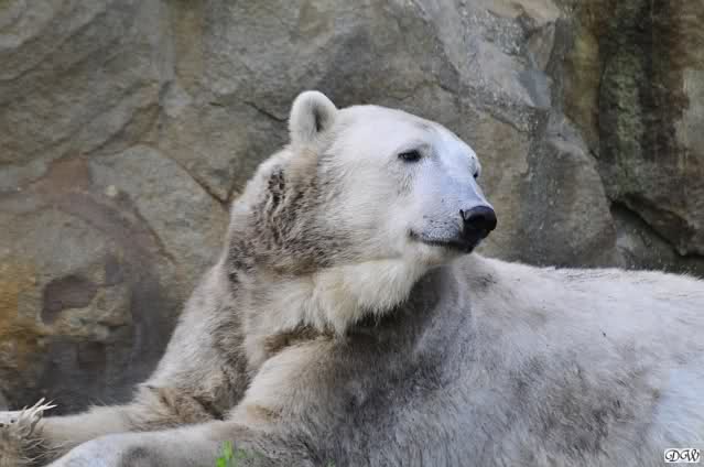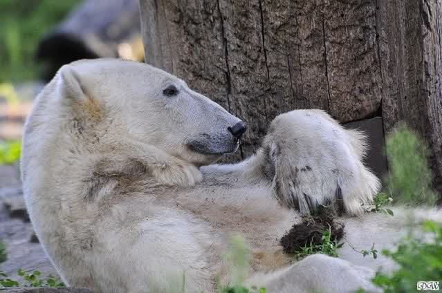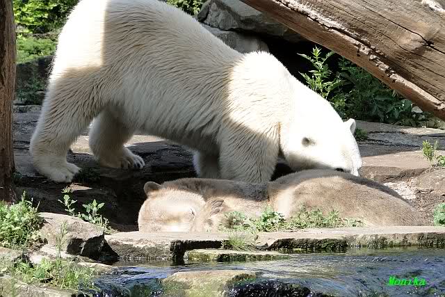 Heute Morgen hat Knut geschlafen und Gianna lief ihre Morgenrunden. Gianna suchte auch heute wieder Knut`s Nähe. Manchmal ließ er es für kurze Zeit zu, zeigte ihr aber durch seine Schnute, dass er doch lieber seine Ruhe haben möchte. Es wurde auch wieder kräftig gebrummt.