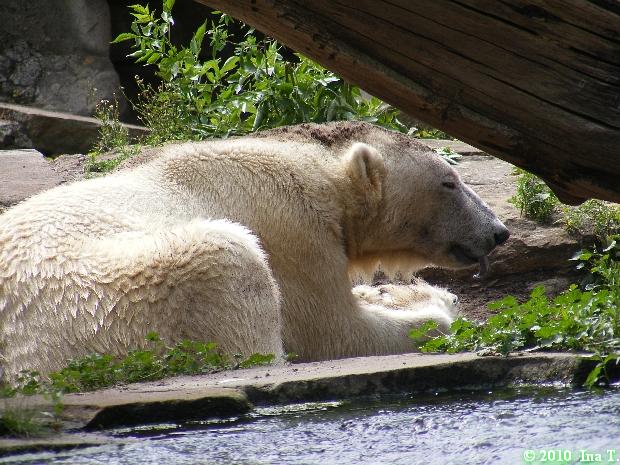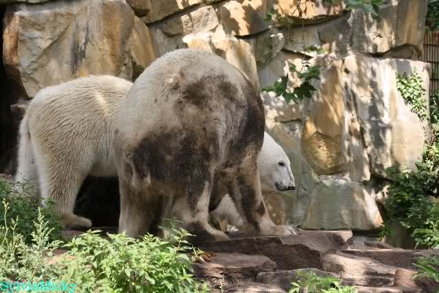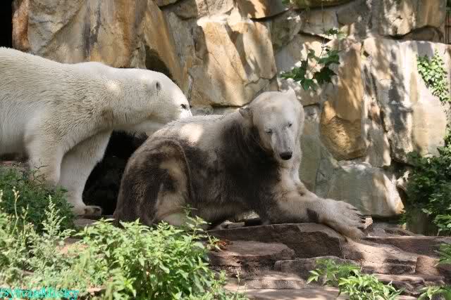 Vor einigen Tagen traf ich ein nettes Ehepaar aus Texas bei den großen Eisbären. Sie sind extra wegen Knut nach Berlin gekommen und haben seine Geschichte von Anfang an mit verfolgt. Sie fragten mich, wer von den Dreien Knut sei. Ich ging dann mit ihnen zu Knut.