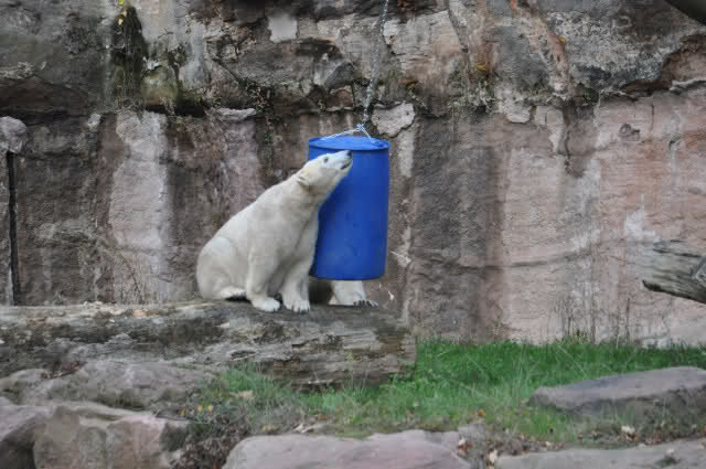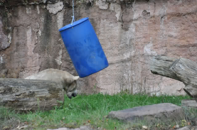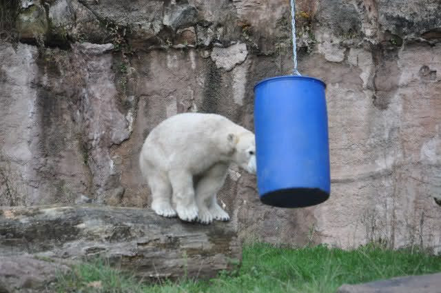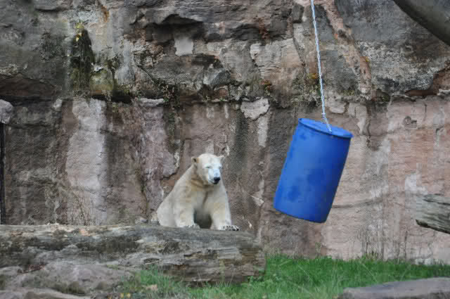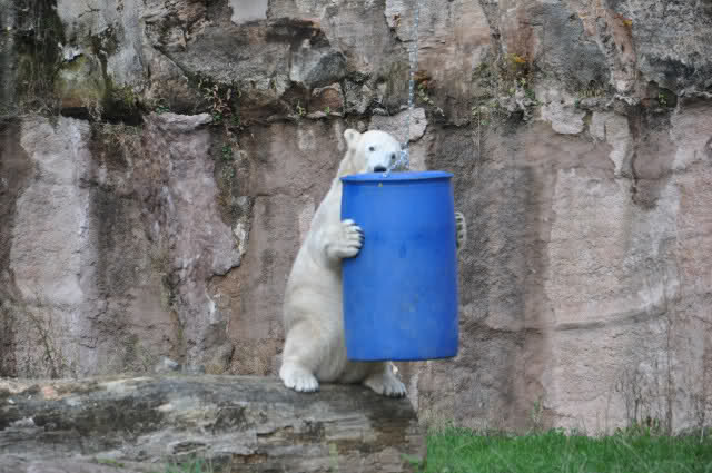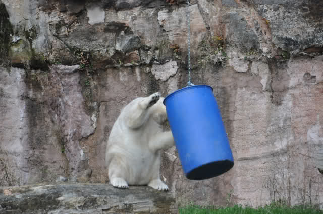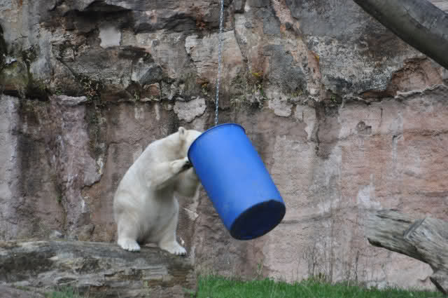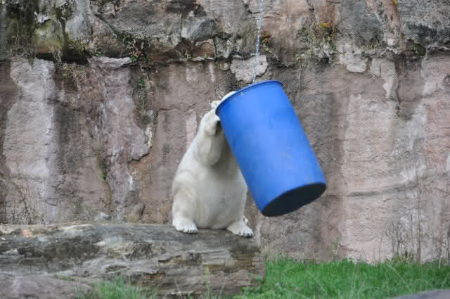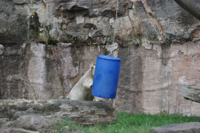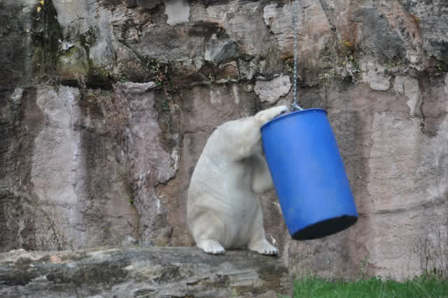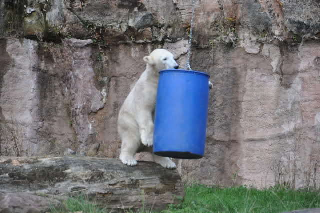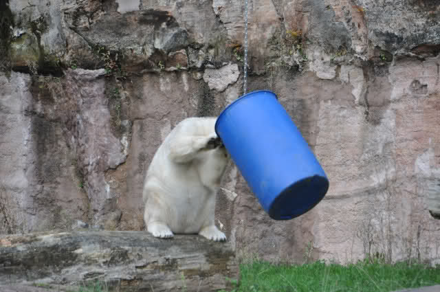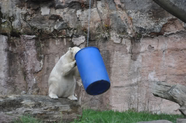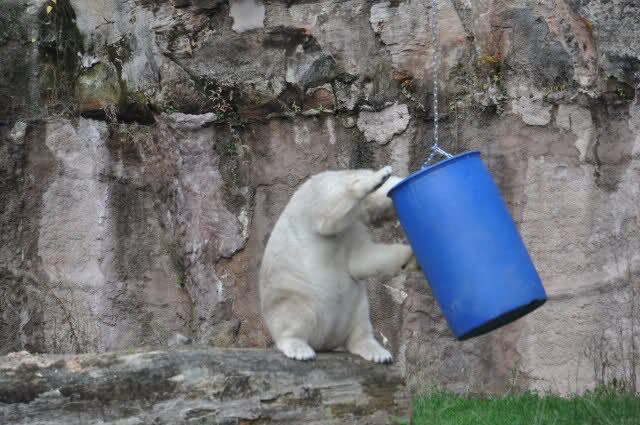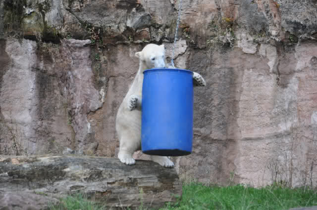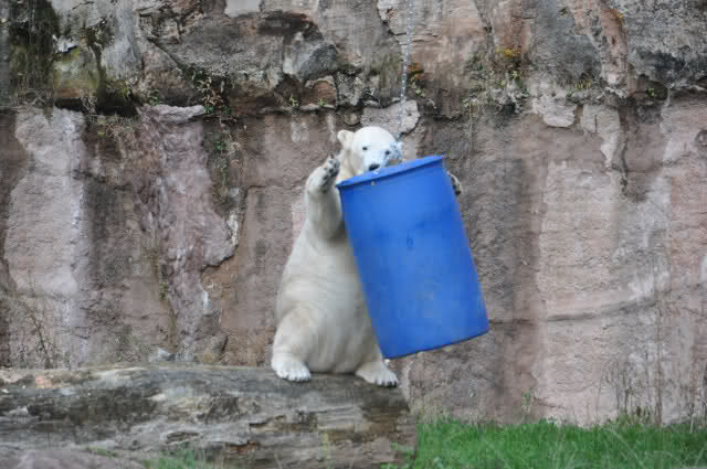 Flocke hat die Lage jederzeit im Griff und kann die Tonne problemlos wieder auffangen und festhalten ...