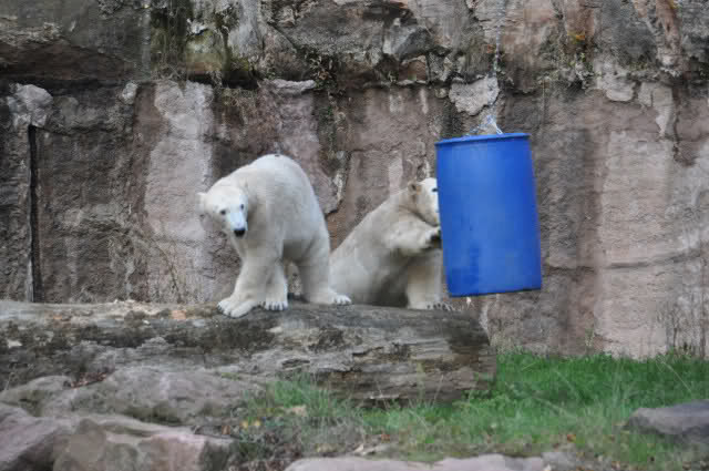 Rasputin hatte Flocke zu lange hinterher geschaut, da hat ihn die Tonne erwischt, er ist dann nach hinten vom Baumstamm gefallen. Bei den Zuschauern hat das für ziemliche Heiterkeit gesorgt