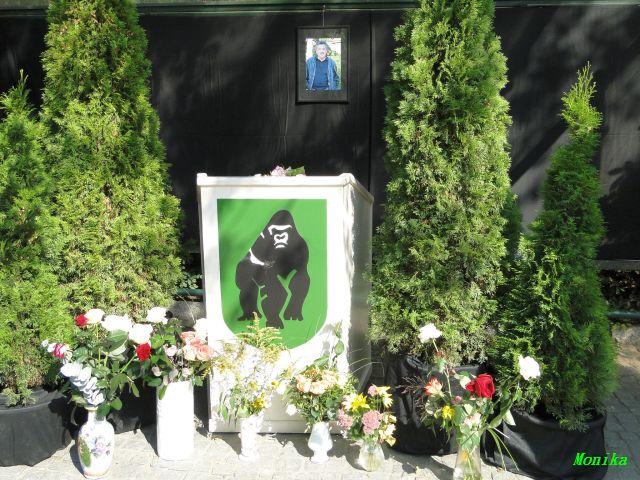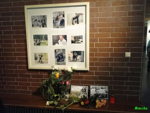 Die Blumen und Gedenkschriften befinden sich noch auf der Bank im Affenhaus. Es kamen sogar noch einige dazu.