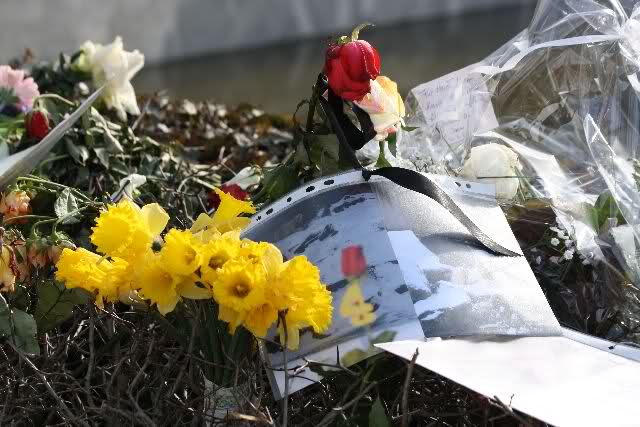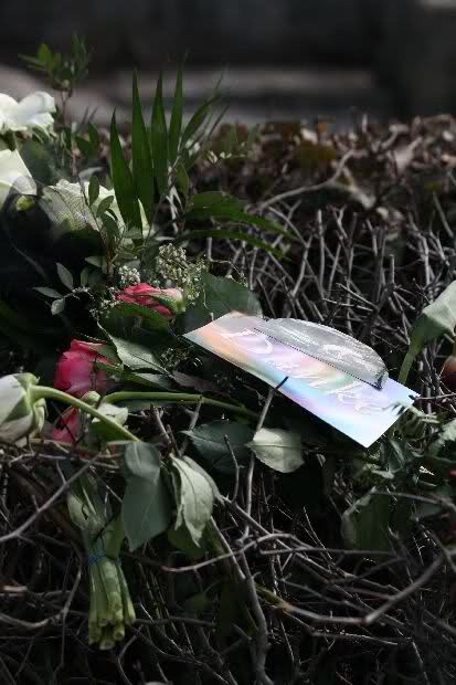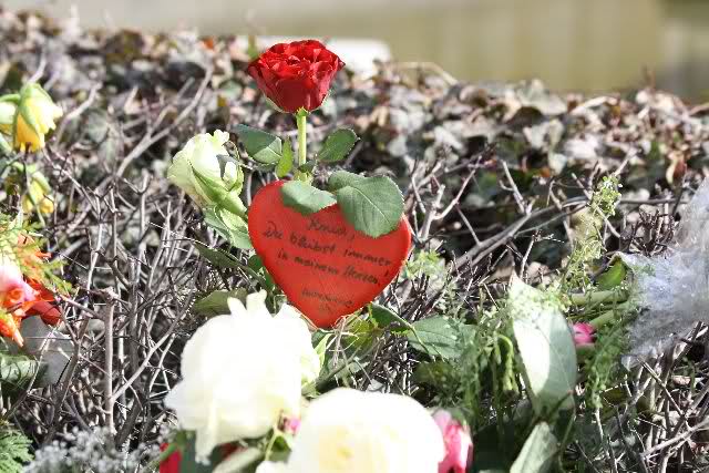 Auch heute haben Besucher viele Blumen, Karten und Fotos abgelegt.