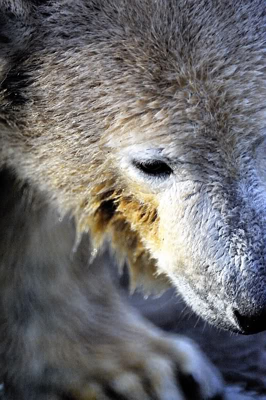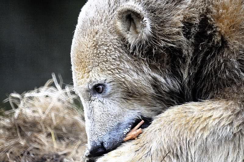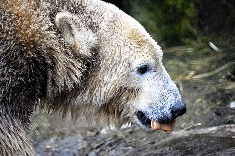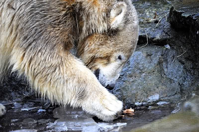 Zum Glück wurde ich in dem Moment abgelenkt, denn meine Bekannte, mit der ich mit verabredet hatte, traf am Eisbärengehege ein. Sie hatte ihren kleinen, süßen Neffen mitgebracht. Schon sah der Tag gleich etwas freundlicher aus. Die Fütterung machte heute ein junger Pfleger, der zwar nicht zum Bärenrevier gehört, aber schon öfter dort geholfen hat. Er wurde von einer jungen Frau begleitet, wahrscheinlich eine Auszubildende.