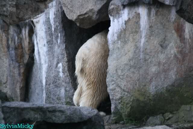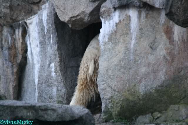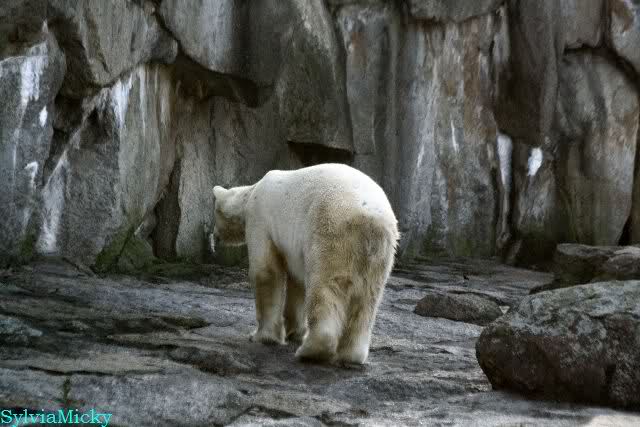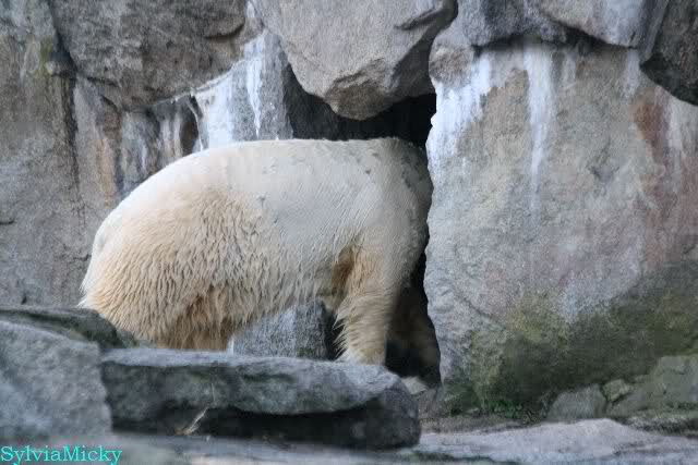 Als Knut später rein gehen sollte, blieb er erstmal stehen. Es roch wohl nach den Bärinnen. Aber schließlich ging er rein.