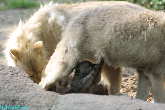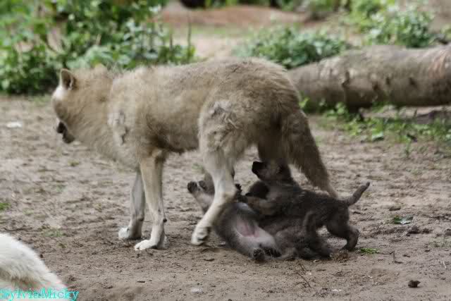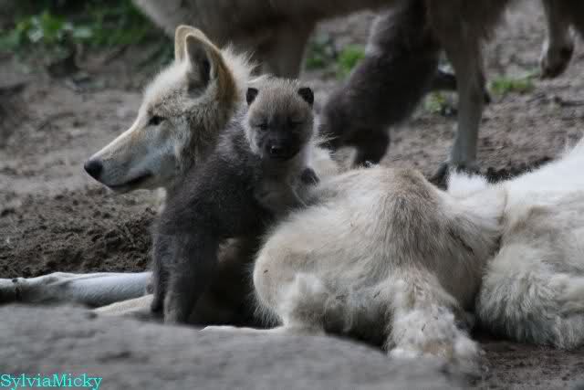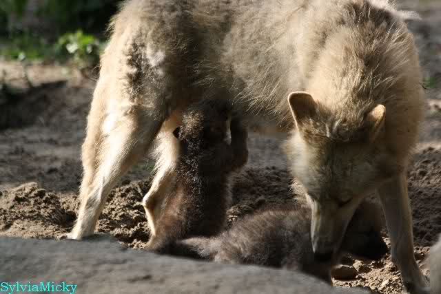 Kaum kommt der dritte Wolf dazu, steht die Mutter auf