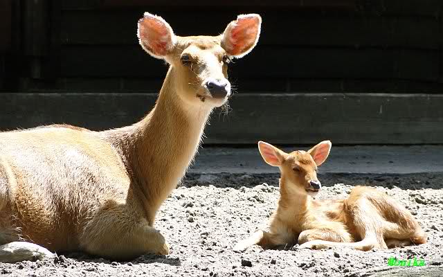 Der kleinste der beiden versucht immer zu trinken aber die Mama läuft meistens weiter.