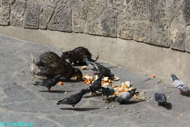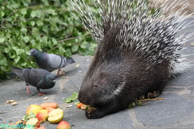 Fütterung bei den afrikanischen Quastenstachler mit Tauben