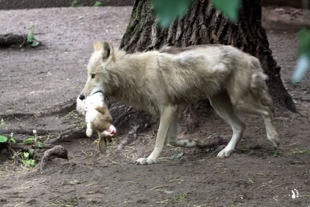 ... Mama Wolf trägt stolz ihre Beute durch's Gehege