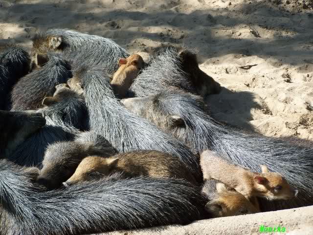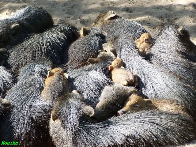 bei den Pekaris gibt es zwei ganz kleine, und dann die 2 kleinen Geschwister, die schon ein paar Wochen älter sind. Die anderen sind die "Alten".