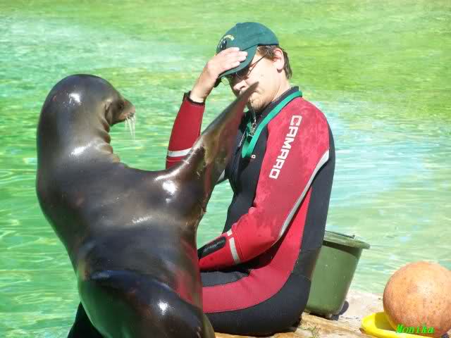 Heute mal einige Fotos von den Seelöwen beim Training mit Herrn Zahmel. Es ist immer wieder schön anzusehen, wie liebevoll H. Zahmel mit den Tieren umgeht. Und den Tieren scheint es Spaß zu machen.
