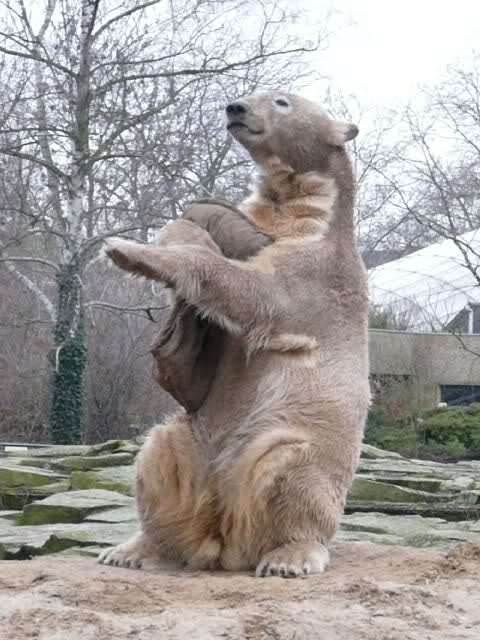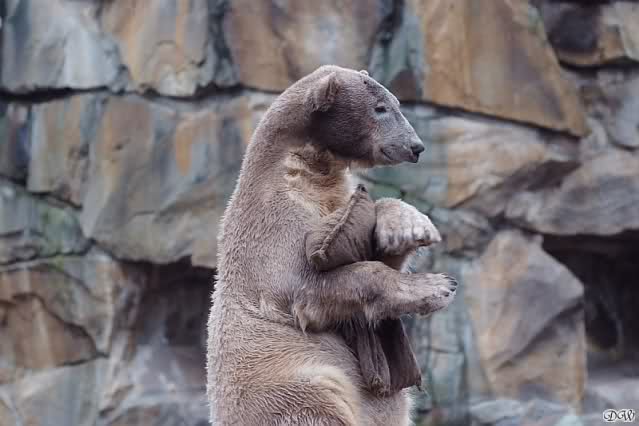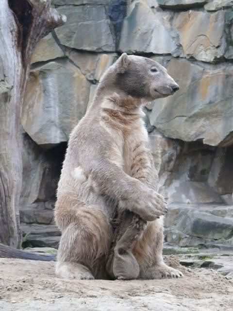 Knut stellte sich immer wieder auf die Hinterbeine und guckte zu den Besuchern, obwohl heute gar nicht so viele da waren.