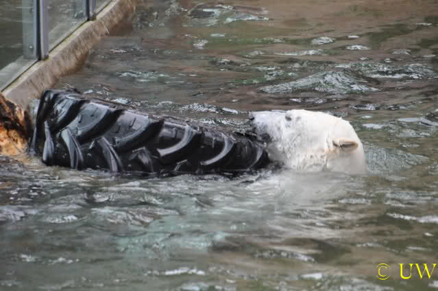 Jetzt gönnte sich Rasputin einmal eine "Flocke-Pause" und holte seinen großen Reifen vom Grund des Beckens