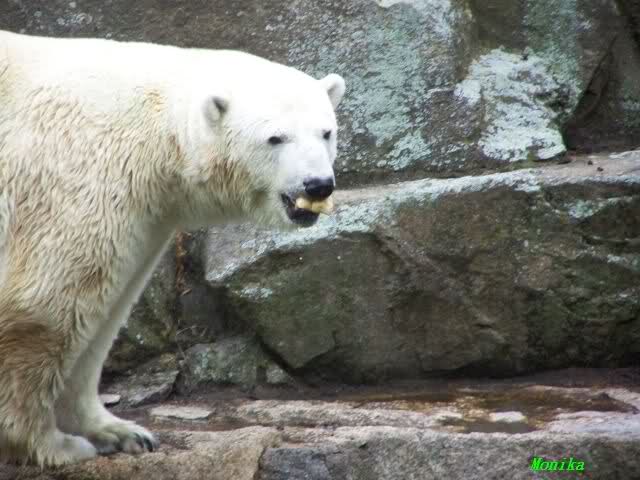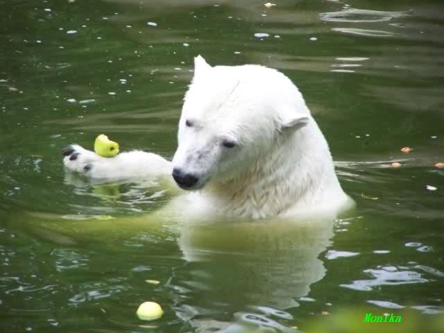 Bei den großen Eisbären gab es heute keine Mäuse, sondern Fleisch,Brötchen und viele Äpfel und Walnüsse.