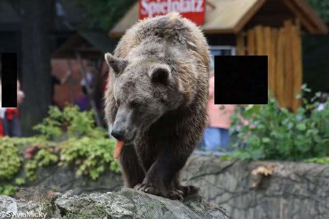 Das Tor zum Bärenhof stand heute kurz auf, und Muschi guckte uns an. Leider ist das Foto etwas verschwommen